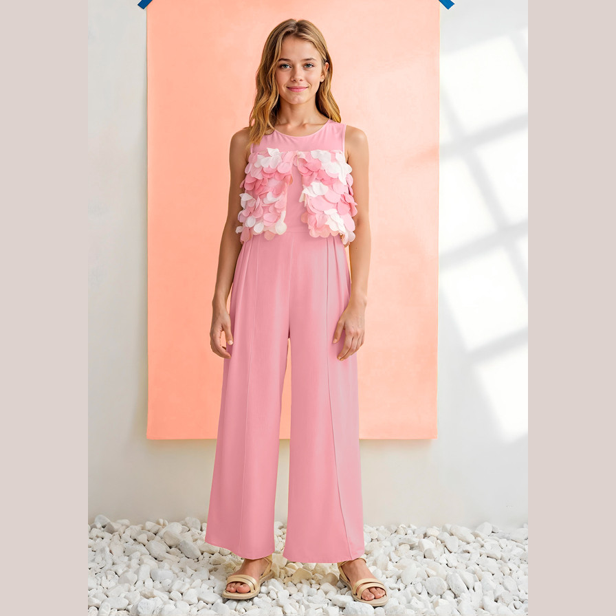 Tuta Elegante da Cerimonia Bambina Rosa con Rifiniture Floreali – Primavera Estate | Abel & Lula