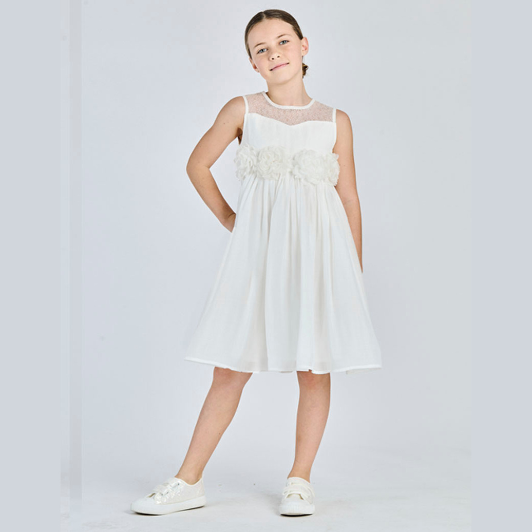 L’abito da bambina Alice Pi in elegante bianco è impreziosito da raffinate rifiniture a forma di rosa, che donano un tocco romantico e delicato al design. La linea è armoniosa e curata nei dettagli, pensata per valorizzare ogni movimento con leggerezza e stile. Perfetto per cerimonie ed eventi speciali, è disponibile nelle taglie dalla 4 alla 14 anni, accompagnando con grazia ogni occasione importante. 🌹🤍