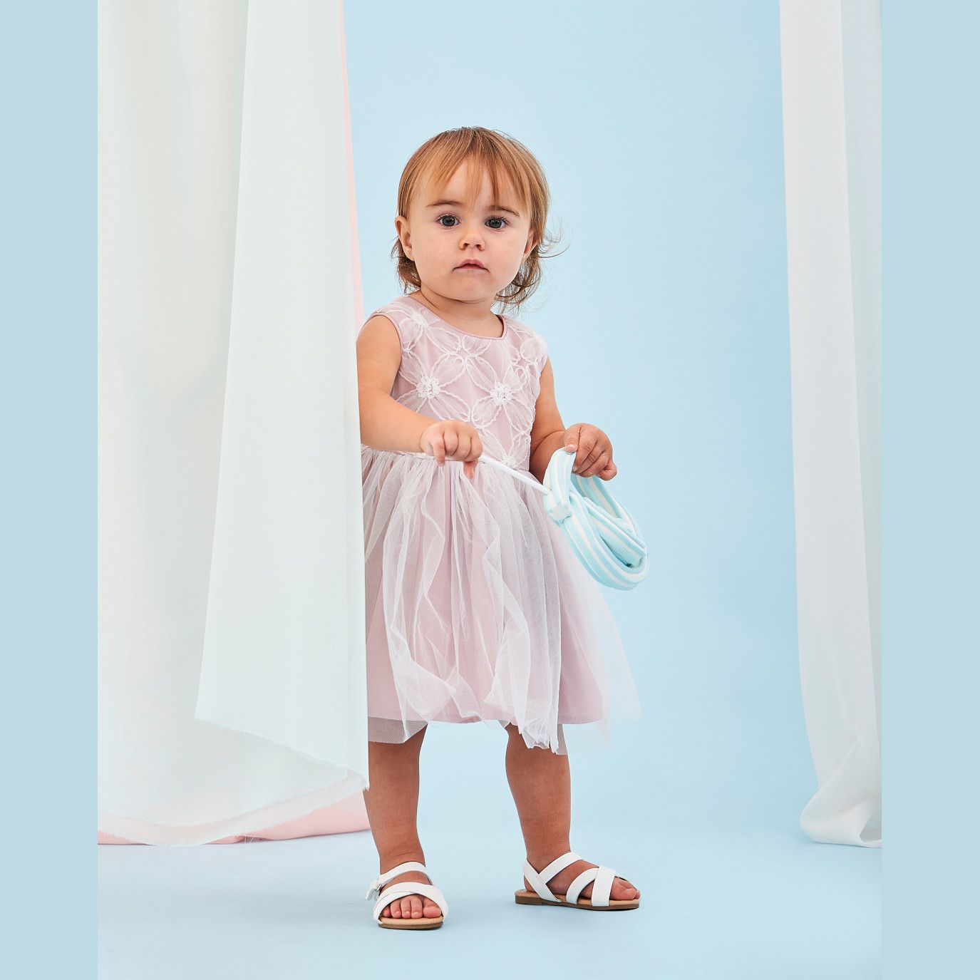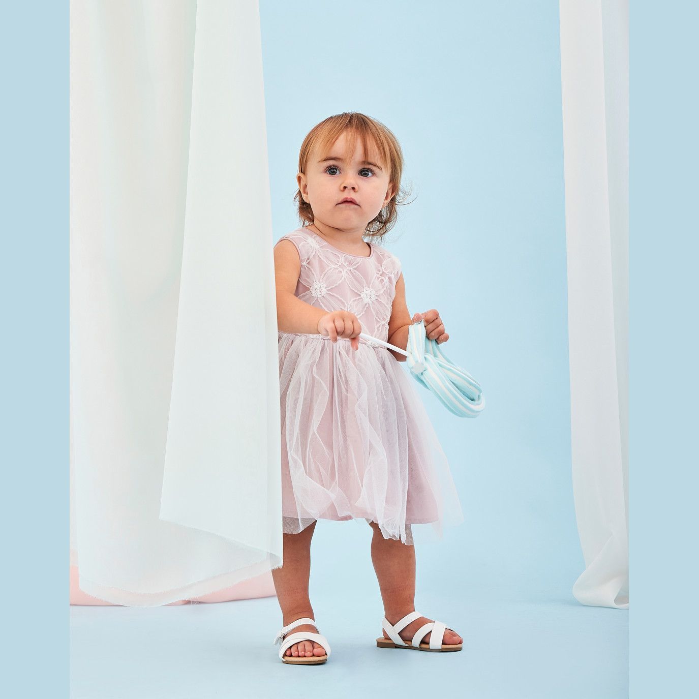 | Info Prodotto | Abito in tulle di colore rosa petalo, della linea Alice Pi baby. |