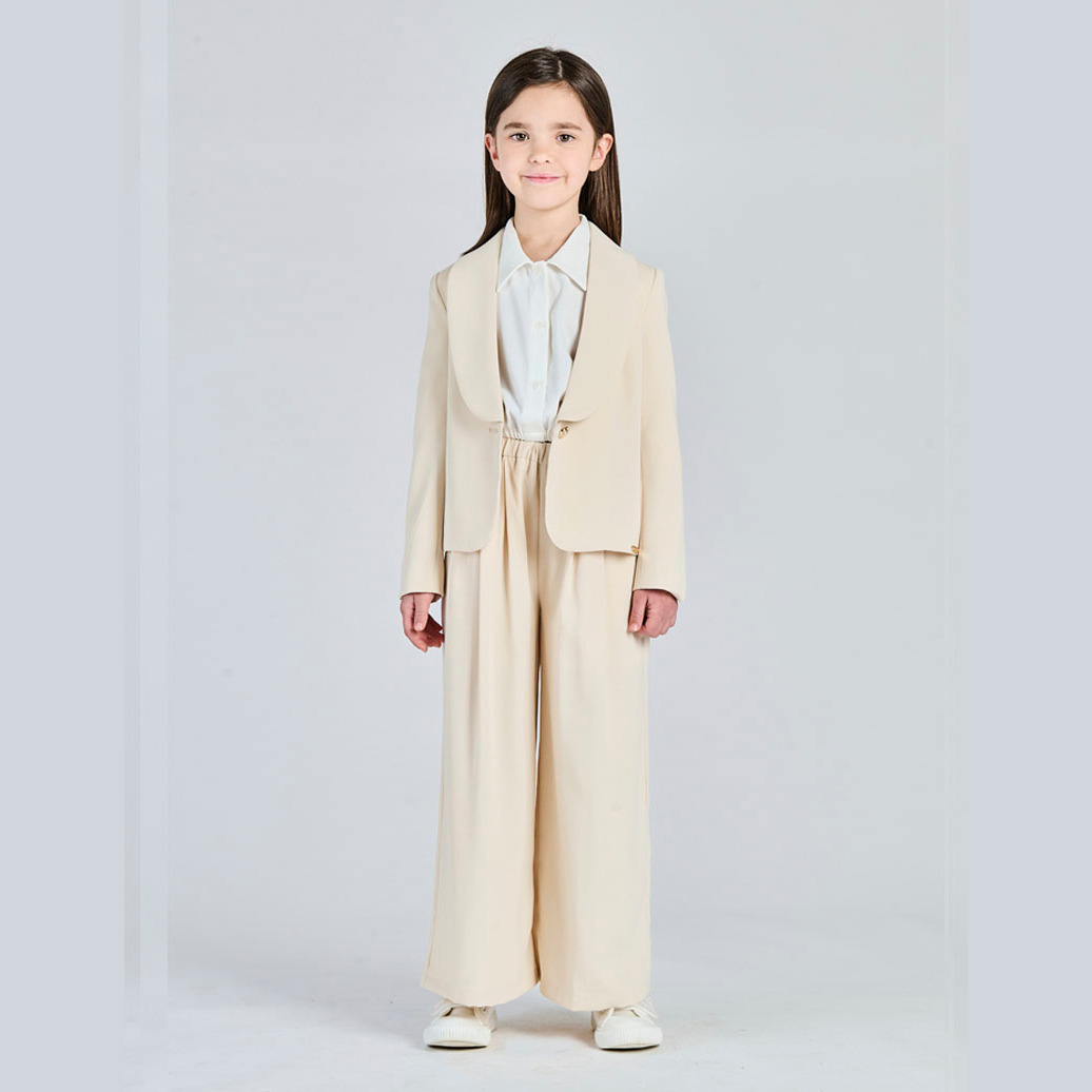 Il pantalone beige Alice Pi linea elegante bambina è un capo raffinato e versatile, perfetto per cerimonie e occasioni speciali. Caratterizzato da una linea pulita e confortevole, valorizza la silhouette con semplicità e stile. Il colore beige, delicato e luminoso, lo rende facile da abbinare, per un look elegante e armonioso dal gusto senza tempo.