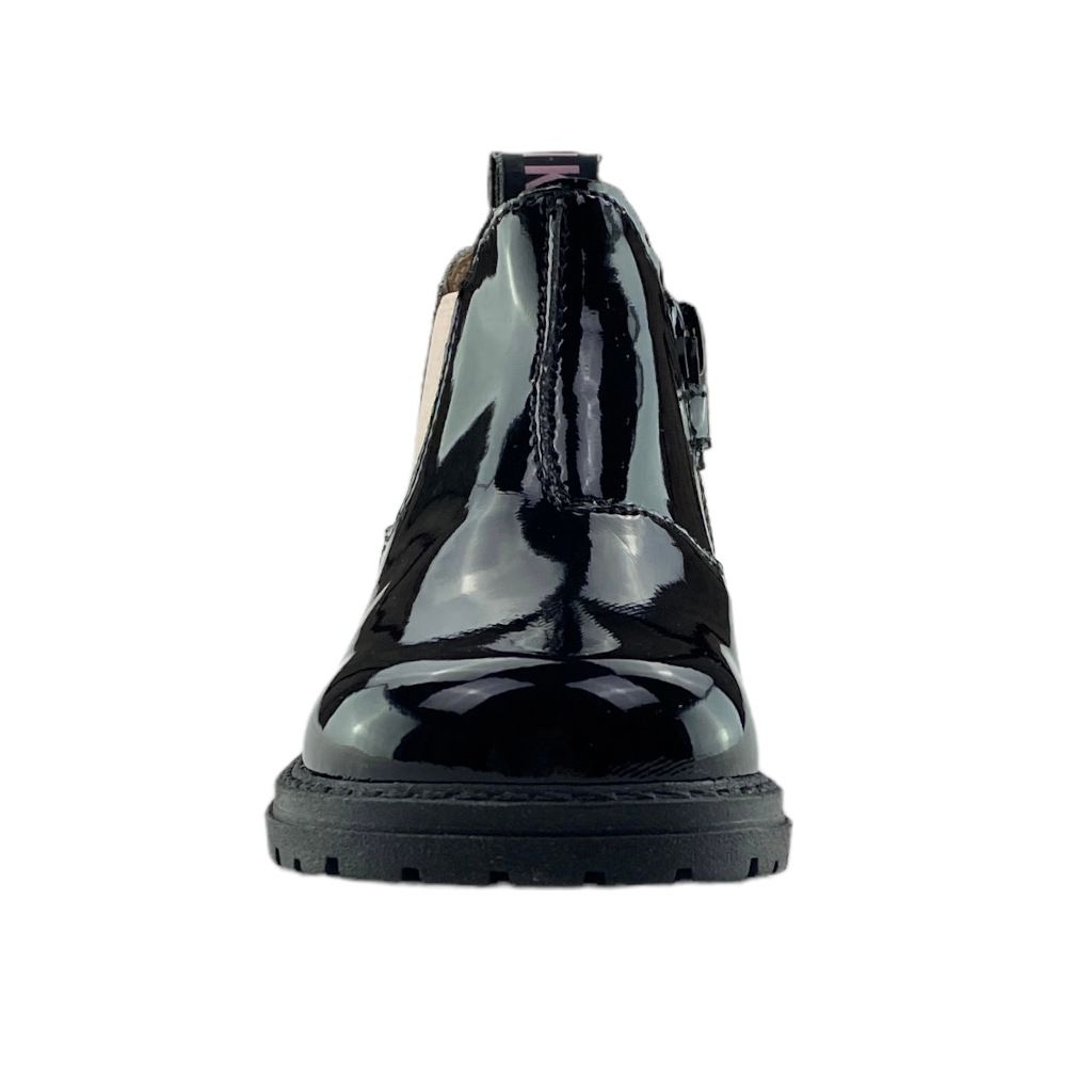 Stivaletto lucido del marchio Bikkembergs con inserti laterali elasticizzati rosa. Facile da indossare con i capi di tendenza.