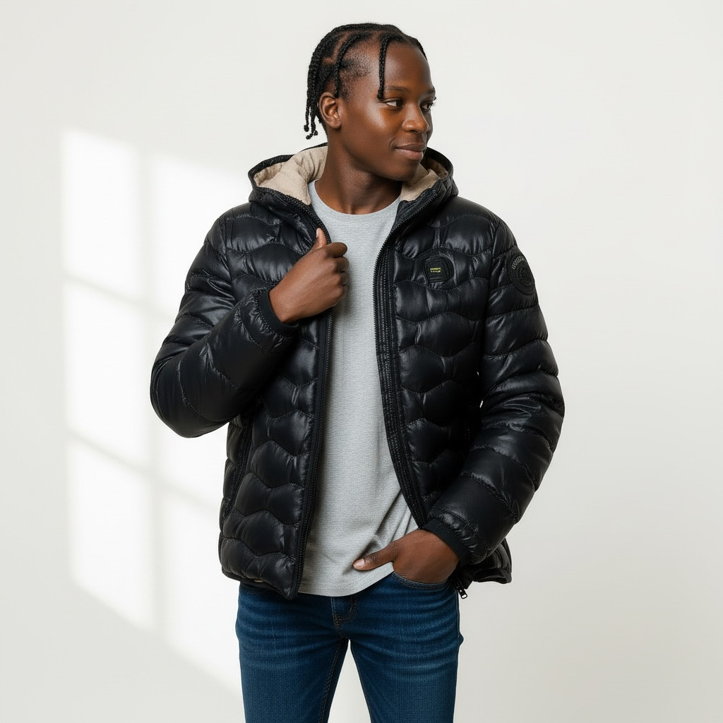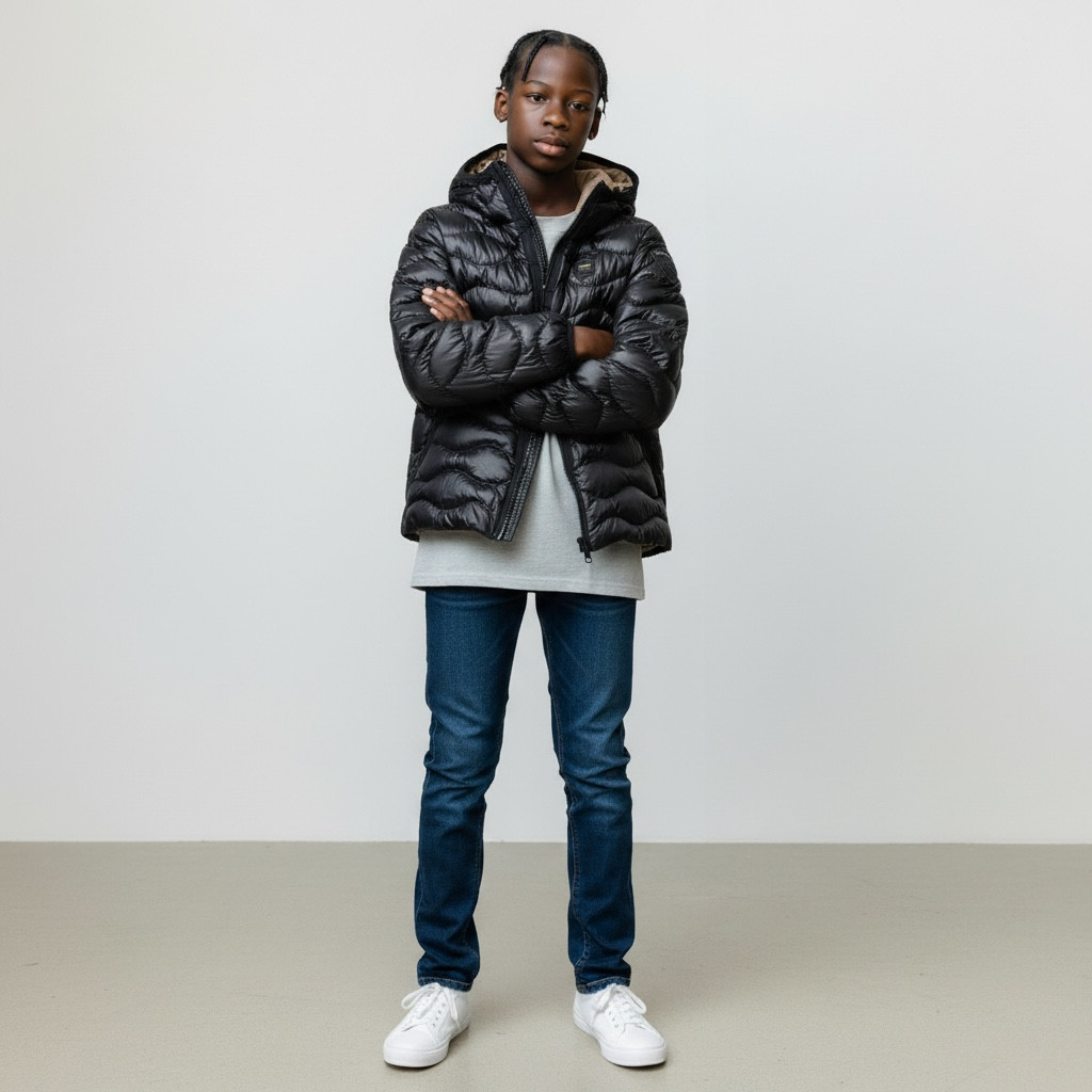 Giubbotto estivo Blauer per bambino in elegante colore nero, caratterizzato da una distintiva impuntura ad onde che aggiunge stile e movimento al design. L’interno è rifinito in tessuto marrone per un tocco di contrasto caldo e ricercato. Leggero e comodo, ideale per le giornate più miti, unisce funzionalità e look urbano perfetto per l’uso quotidiano.