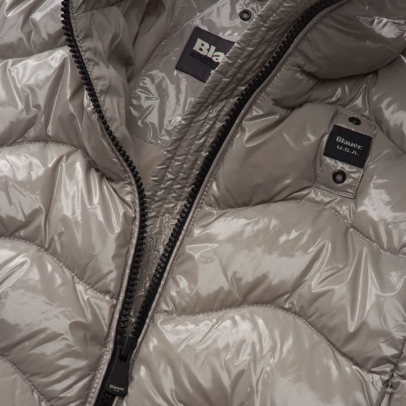Giubbotto Blauer con rivestimento in ovatta della linea da ragazza . Una materiale lucido per mettere in risalto in pieno la femminilitโฆ di questo capo.nnMATERIALE: 100% poliammide.nIMBOTTITURA: 100% poliestere.