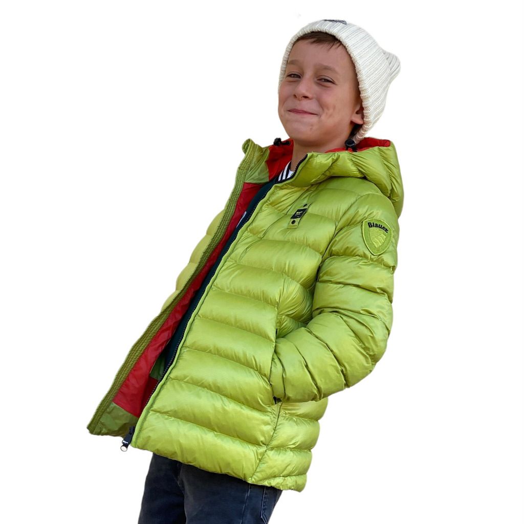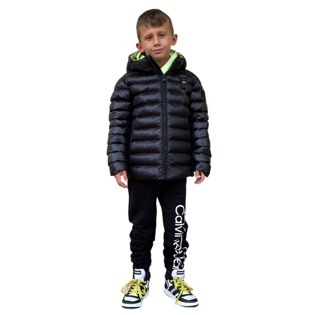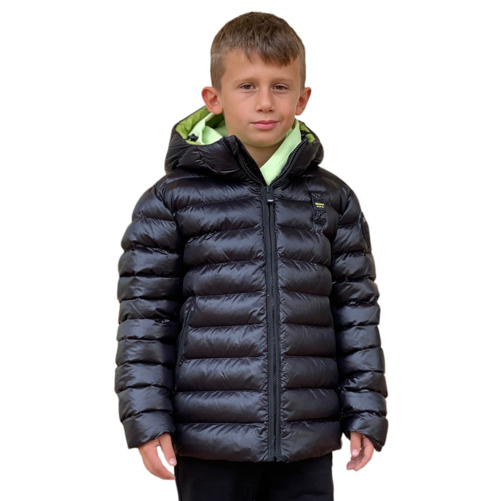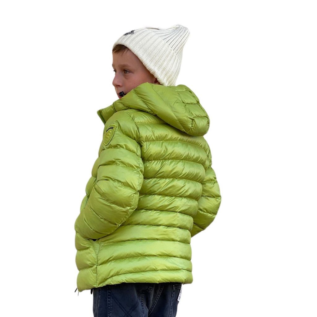 Piumino da bambino targato Blauer kids. Super morbido e confort da indossare per un uso quotidiano. Impuntura orizzontale e patch tono su tono sulla manica sinistra.