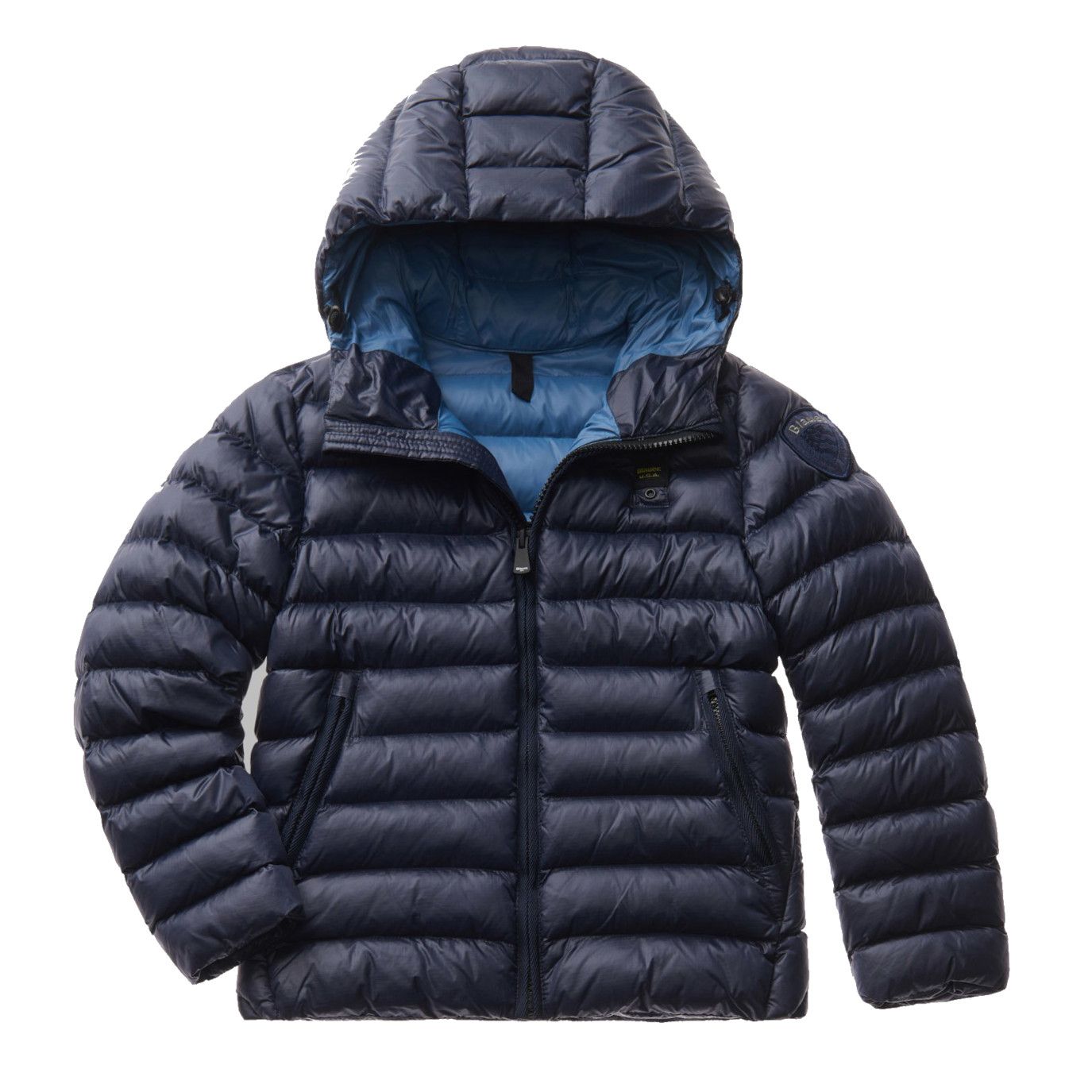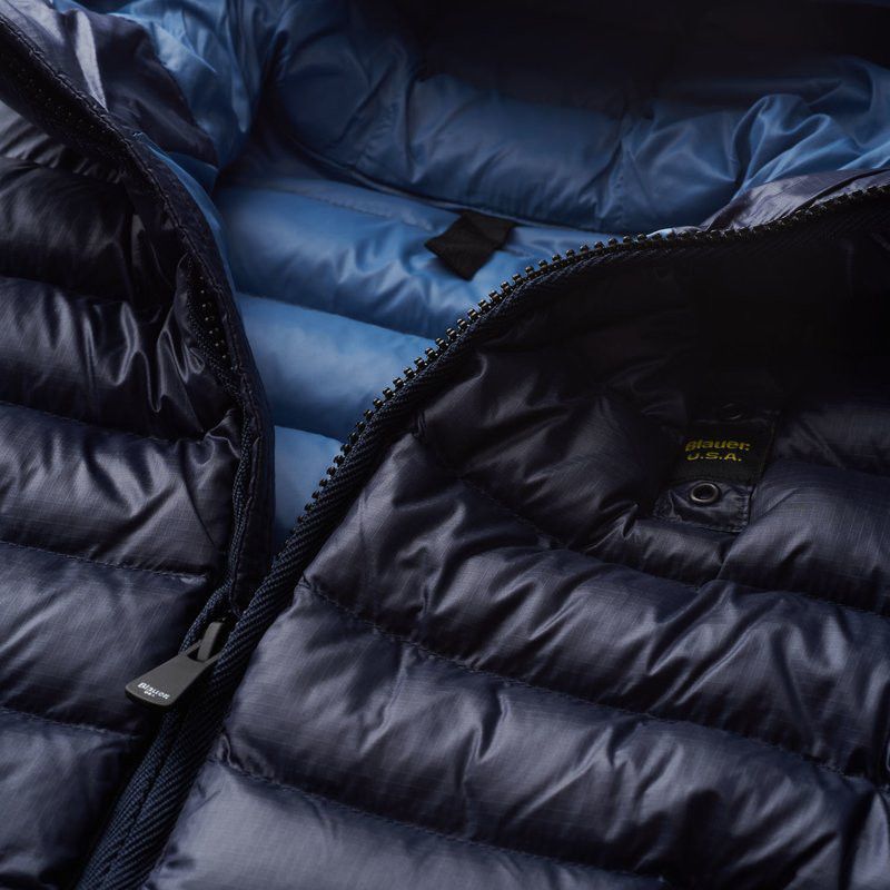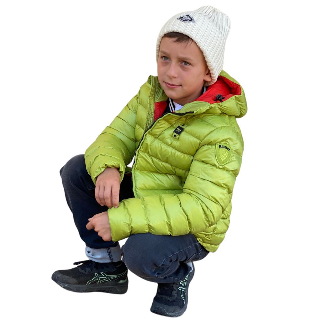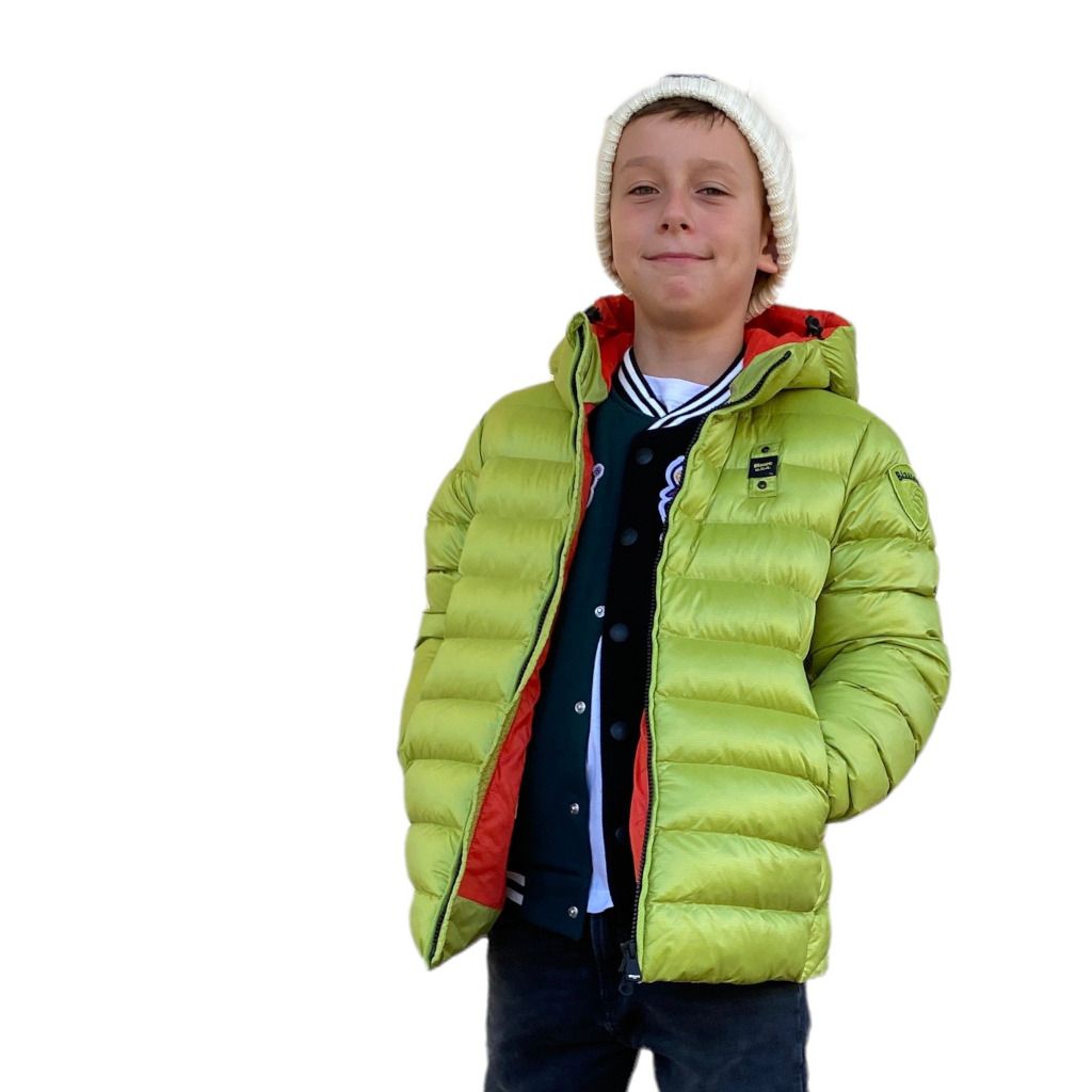 Piumino da bambino targato Blauer kids. Super morbido e confort da indossare per un uso quotidiano. Impuntura orizzontale e patch tono su tono sulla manica sinistra.