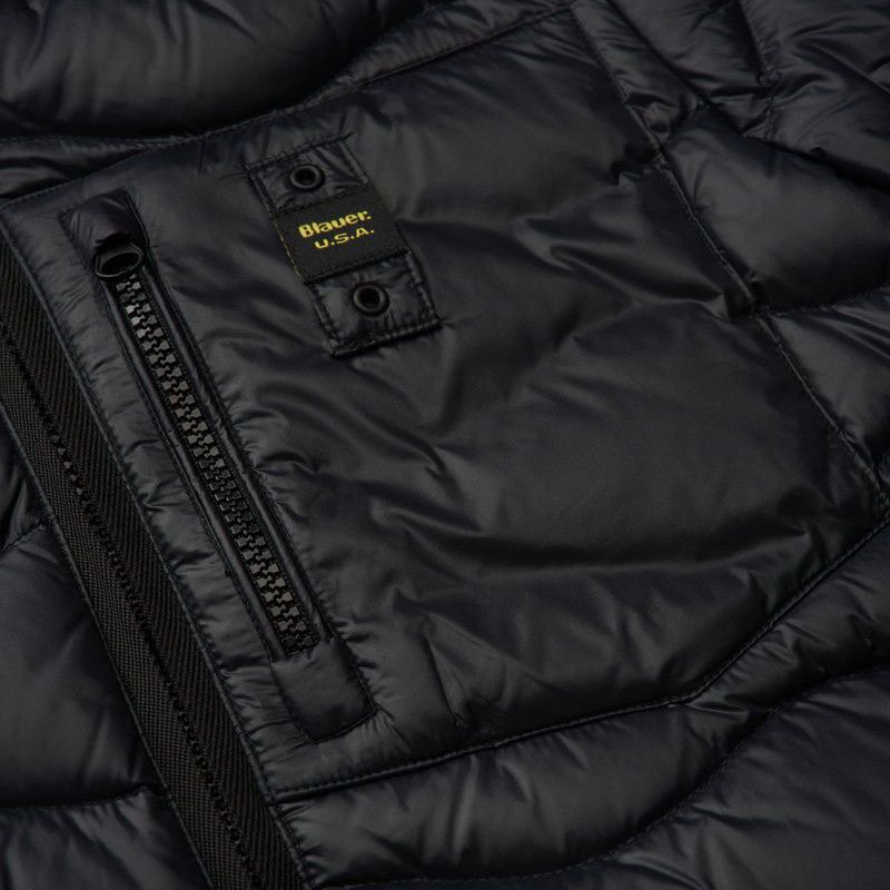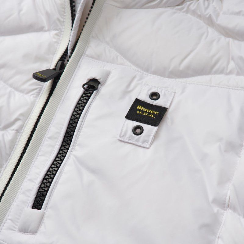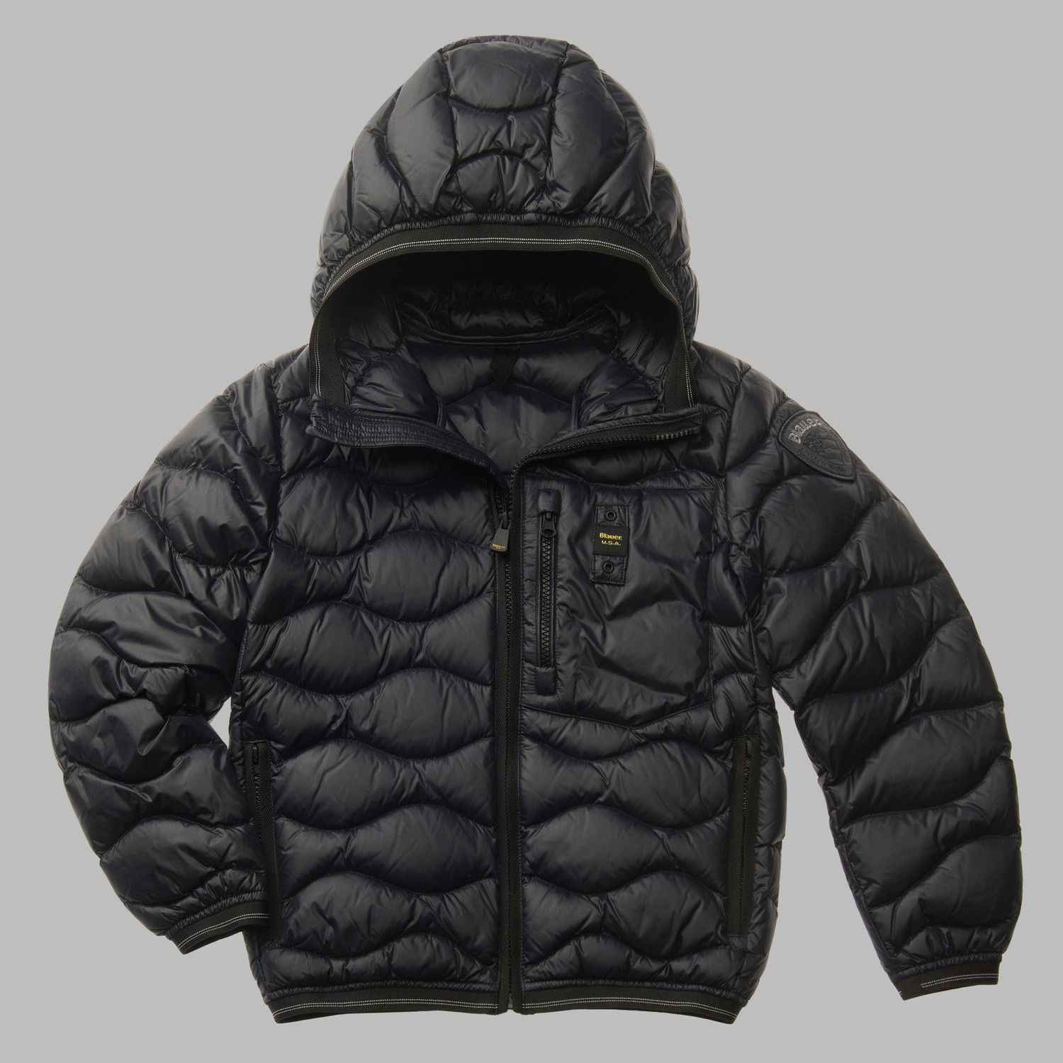 Uno dei capi piโ iconici dell’ inverno. Il piumino ad onde della linea da ragazzo Blauer. Disponibile nei colori bianco, nero e blu.nnMATERIALE: 100% poliammidenIMBOTTITURA: 90% piumino d’ anatra, 10% piuma.