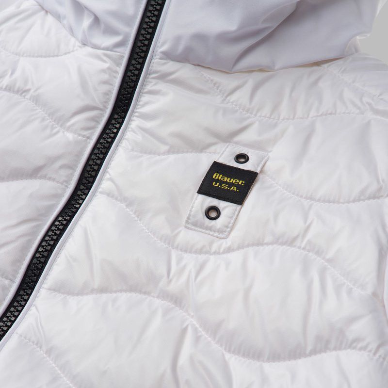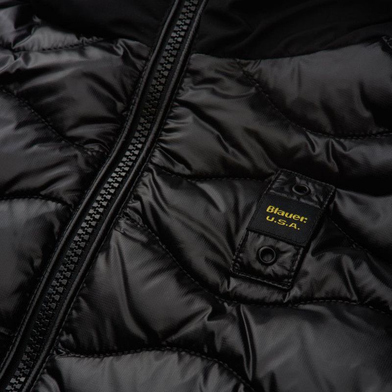 Iconico piumino Blauer con maniche lisce e corpo ad onde. Una variante di uno dei capi piโ di tendenza del momento.nnMATERIALE: 100% poliammide.nIMBOTTITURA: 50% poliestere, 45% piumino, 5% piuma d’ anatra.