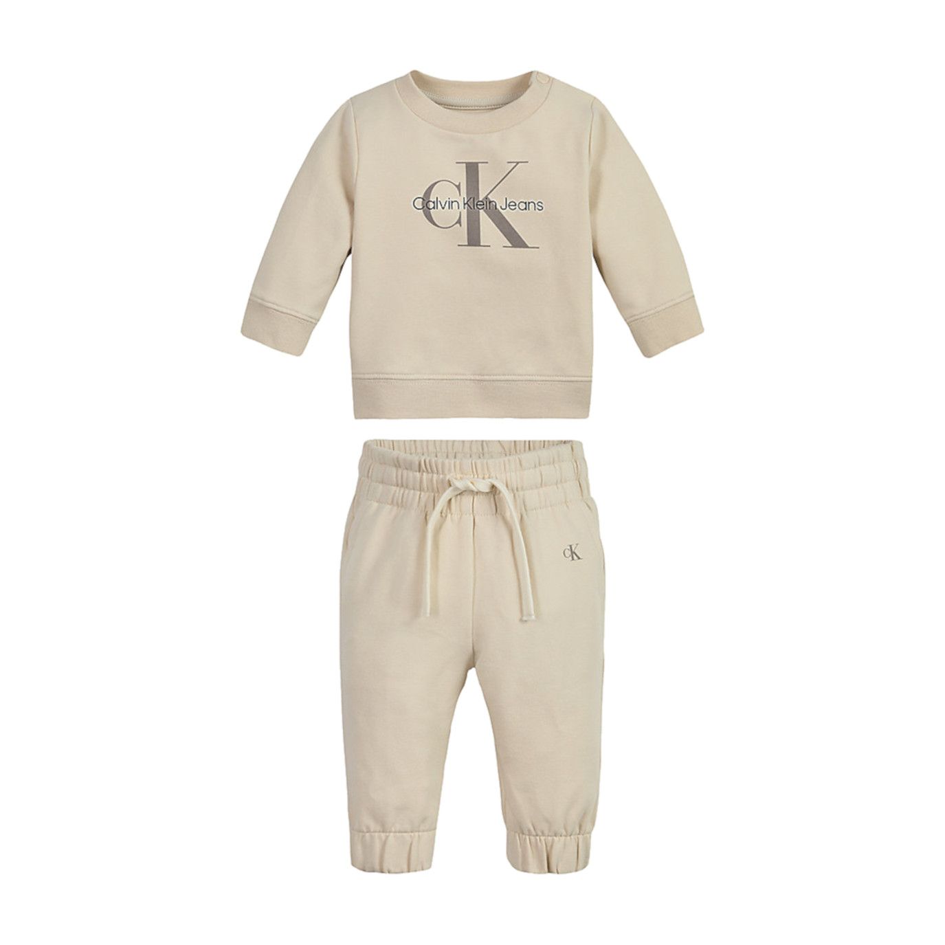 Completino in tuta della linea da bambino Calvin Klein. Disponibile nei colori nero e beige.
