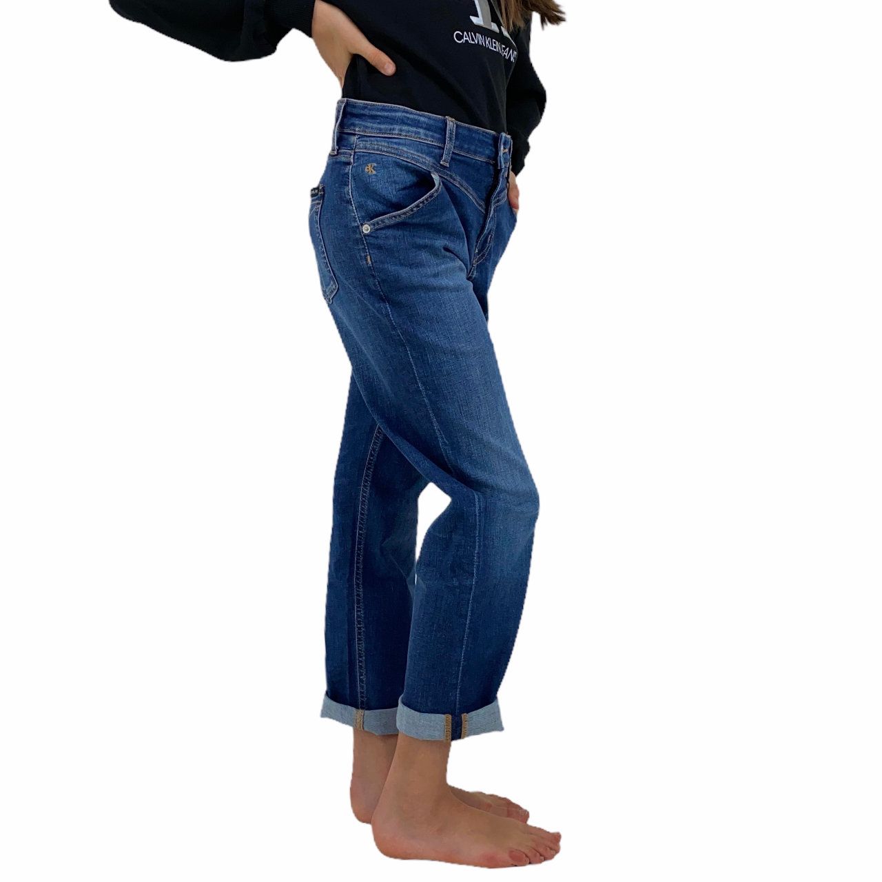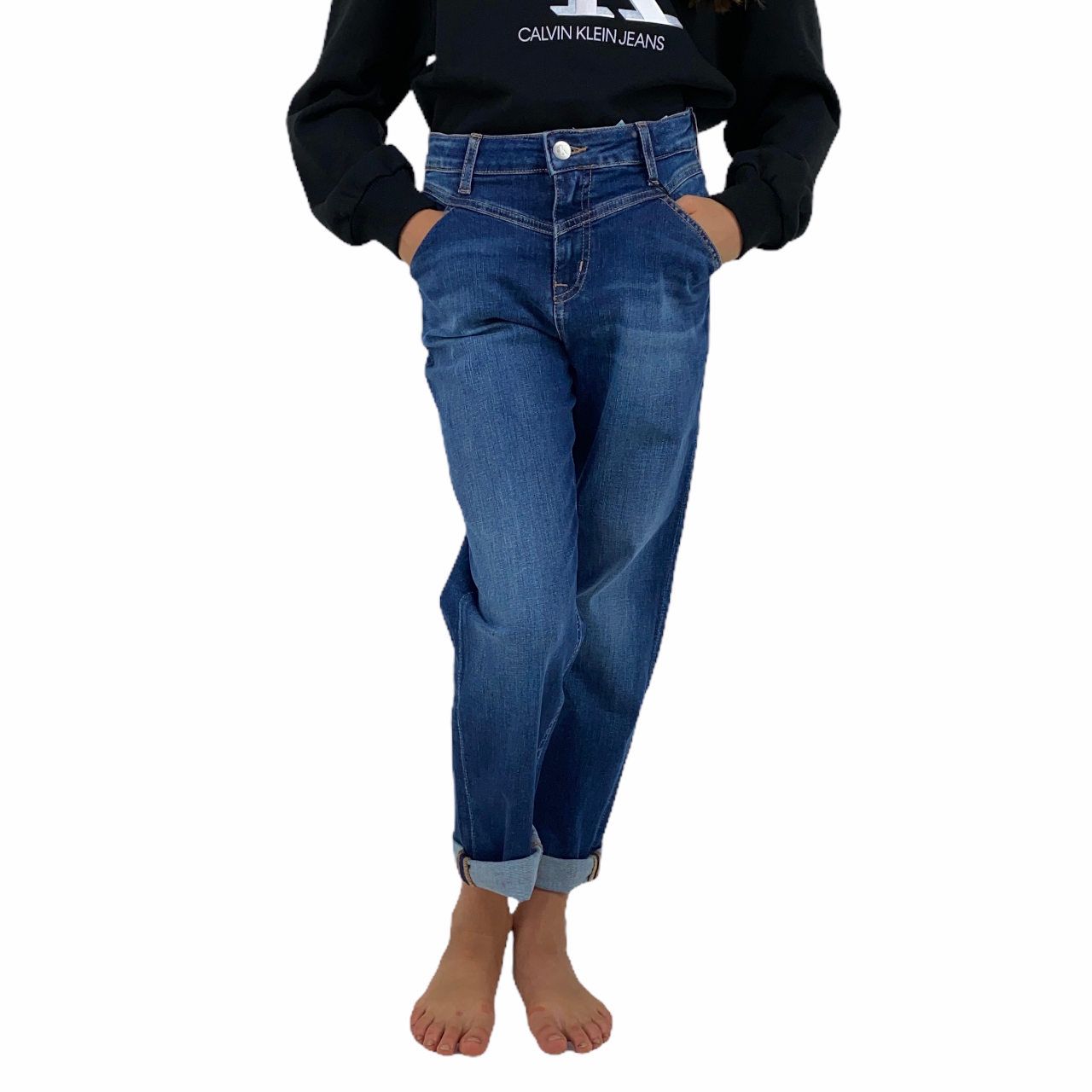 Jeans sostenibile di Calvin Klein bambina. Uno stile di modernitโฆ unico in questo pantalone da portare con ogni tipo di outfit.nnMATERIALE: 84% cotone, 2% elastan, 14% poliestere