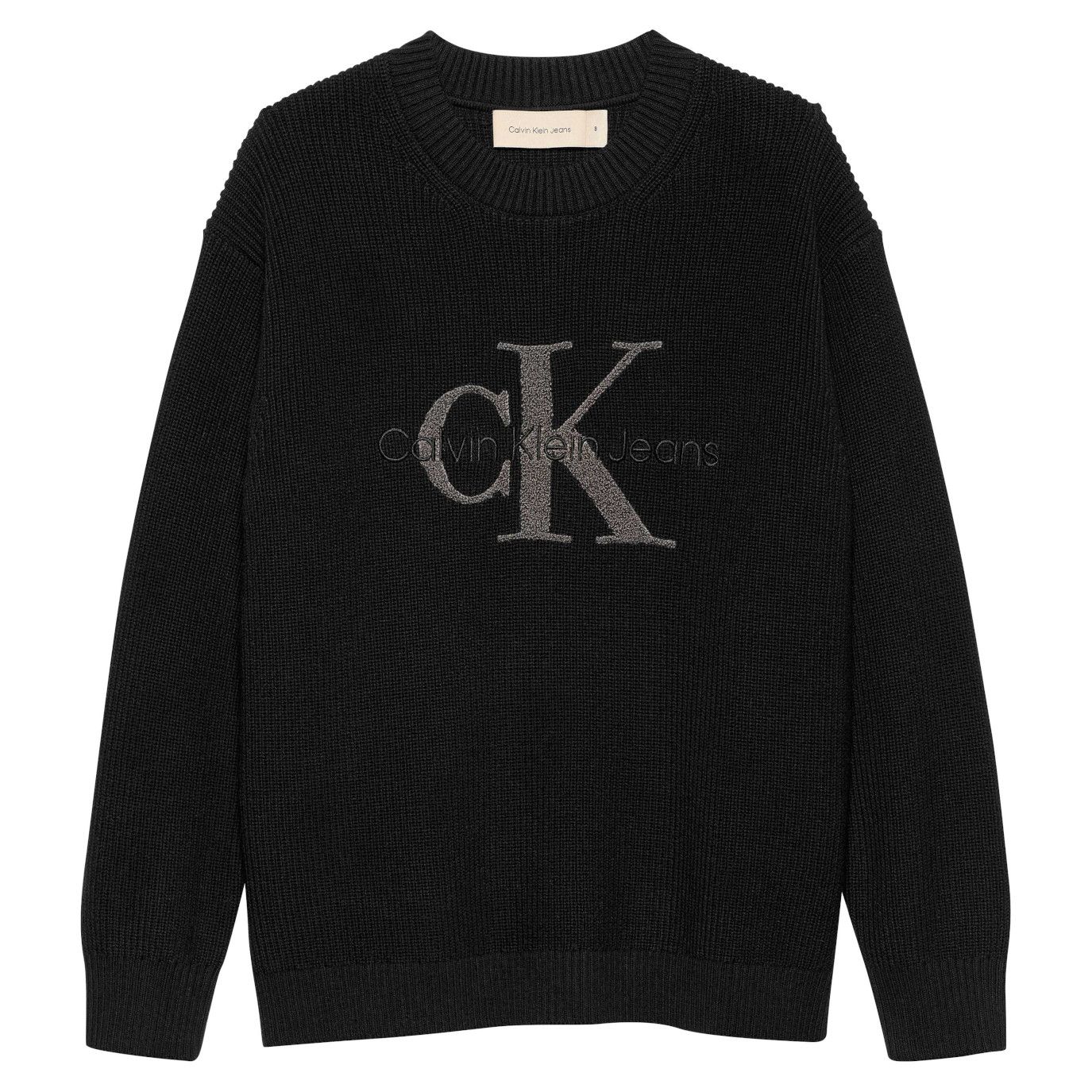 Maglioncino in filo cotone di colore nero con logo da bambino della linea Calvin Klein.