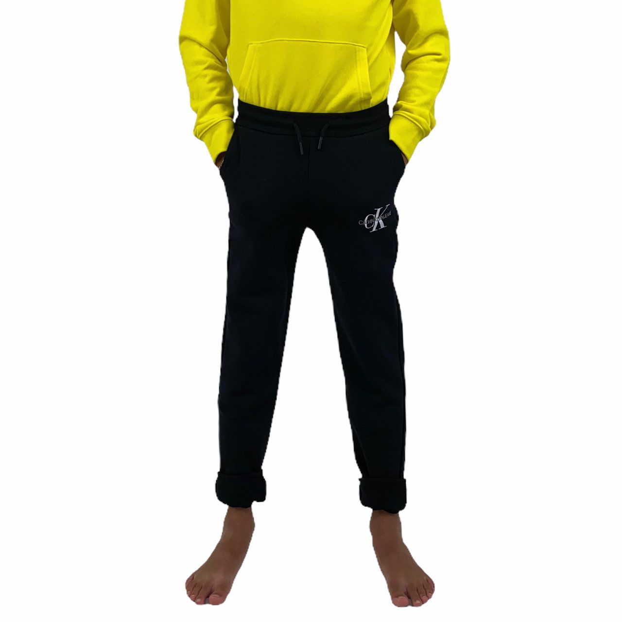 Pantalone di tuta da bambino nero con logo Calvin Klein sulla gamba. Un pantalone basico e sportivo per i tuoi outfit quotidiani.nnMATERIALE: 100% cotone.
