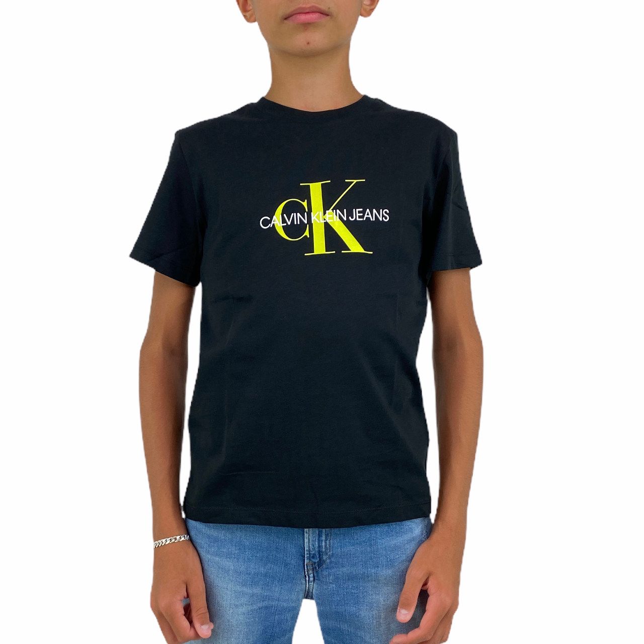 T-shirt a maniche corte di Calvin Klein bambino nel colore nero con logo giallo.