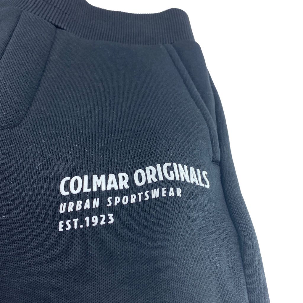 Pantalone di tuta caldo e avvolgente della linea junior di Colmar. Nero con la logo bianco 3d sul fianco destro ล perfetto per tenerti al caldo senza rinunciare al look ella stile!nnMATERIALE: 65% cotone, 35% poliestere.