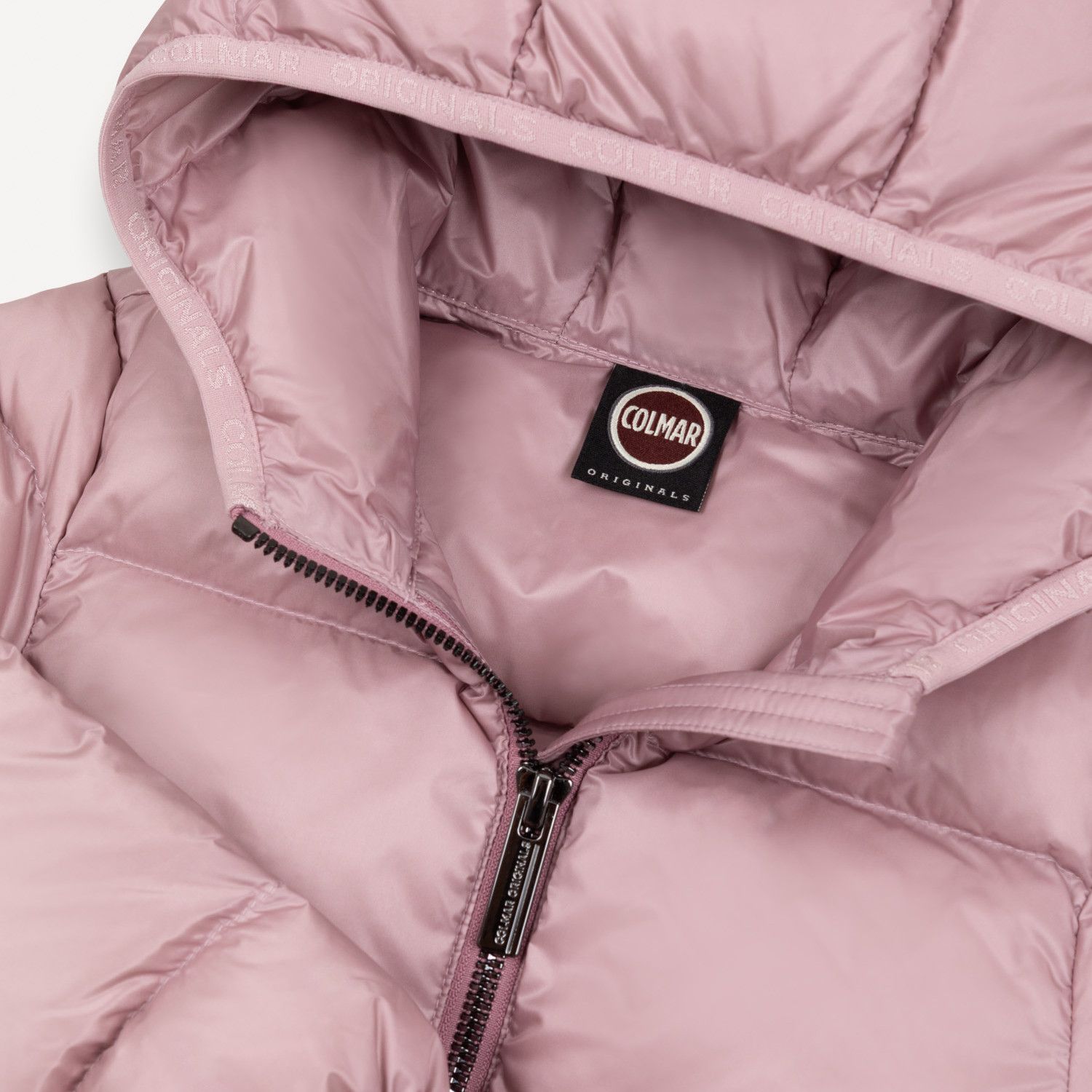 Pensato per offrire calore alle più piccole, il piumino in calda piuma con cappuccio assicura protezione all’aperto in ogni condizione invernale.
