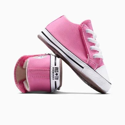 Le Converse modello culla in colore rosa con comoda apertura a strappo sono perfette per regalare ai neonati comfort, praticità e il tocco di stile inconfondibile del brand. Realizzate in morbida tela, risultano leggere e piacevoli da indossare, ideali per accompagnare i primi movimenti del bambino. La chiusura a strappo facilita la calzata e permette ai genitori di metterle e toglierle con rapidità, garantendo comunque una tenuta sicura. La suola morbida e flessibile protegge i piedini senza limitarne la naturale mobilità. Le Converse culla rosa sono la scelta ideale per completare outfit teneri, delicati e sempre alla moda sin dai primi mesi.