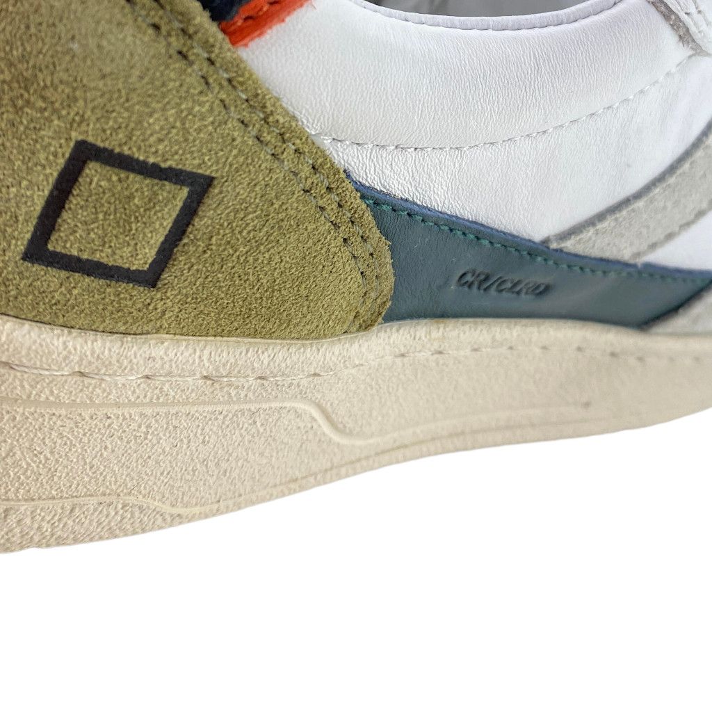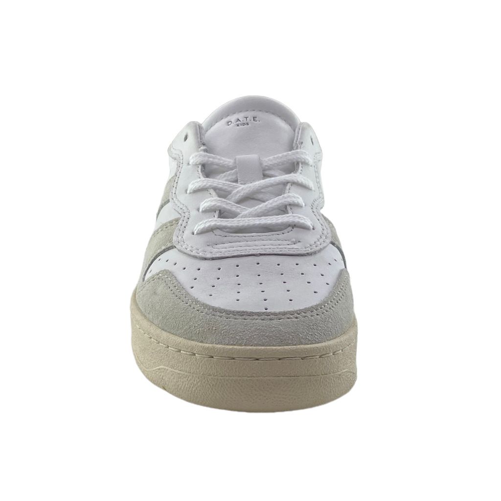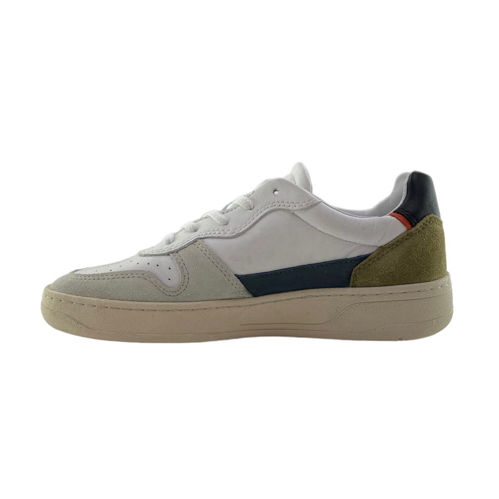 Scarpa bassa in pelle bianca con dettagli in camoscio. La fodera ล in pelle e spugna di cotone.