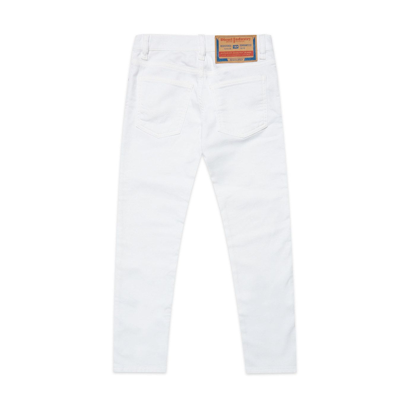 Pantalone bianco di jeans. Un materiale morbido e comodo da indossare. Una giusta alternativa al classico denim. Perfetto per cerimonie o outfit di tutti i giorni.nnMATERIALE: 98% cotone, 2% elastane.