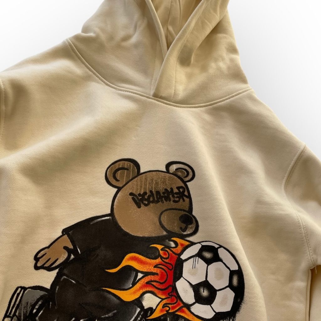 Felpa invernale chiusa da bambino della linea Disclaimer, realizzata in morbido cotone caldo. Il modello presenta un design bianco panna con cappuccio fisso e polsini elasticizzati. A renderla unica ล la simpatica e originale stampa di un orso sul davanti, in perfetto stile urban e creativo tipico del brand. Comoda, trendy e perfetta per aggiungere un tocco di personalitโฆ al look quotidiano.nnMATERIALE: 100% cotone invernale.