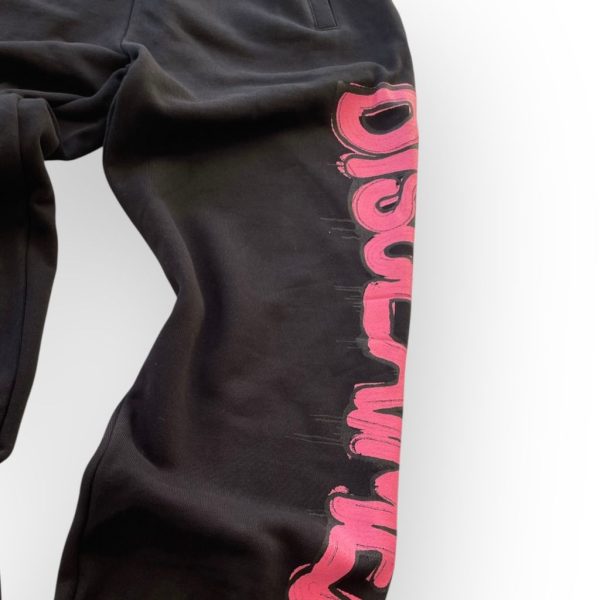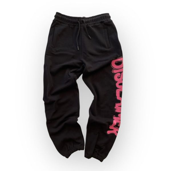Pantalone da bambina firmato Disclaimer, realizzato in tessuto morbido e confortevole, perfetto per ogni momento della giornata. Il design รจ nero con una vistosa scritta rosa “Disclaimer” stampata lungo la gamba, che aggiunge un tocco urban e contemporaneo. Vita elasticizzata per una vestibilitร comoda. Ideale da abbinare alla felpa coordinata per un look streetwear completo.