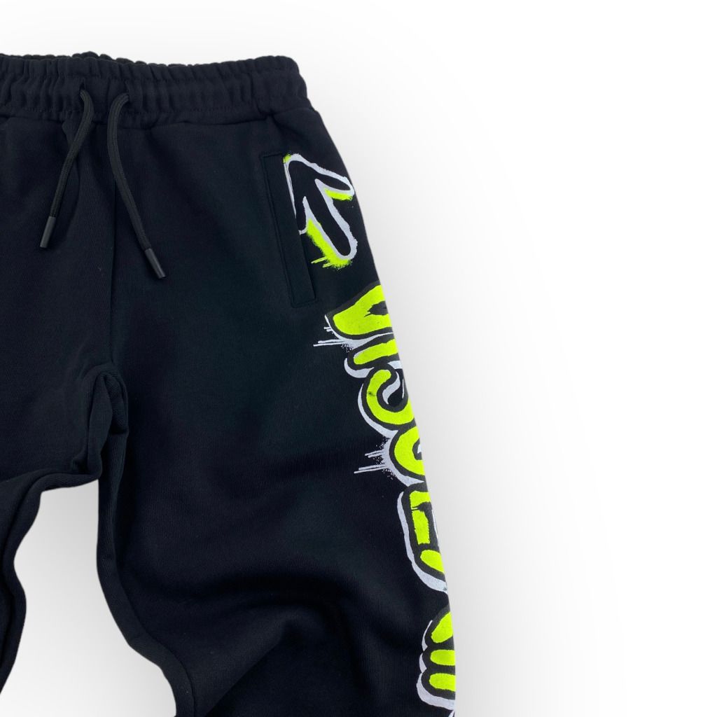 Pantalone tuta nero con scritta fluo della linea bambino Disclaimer.