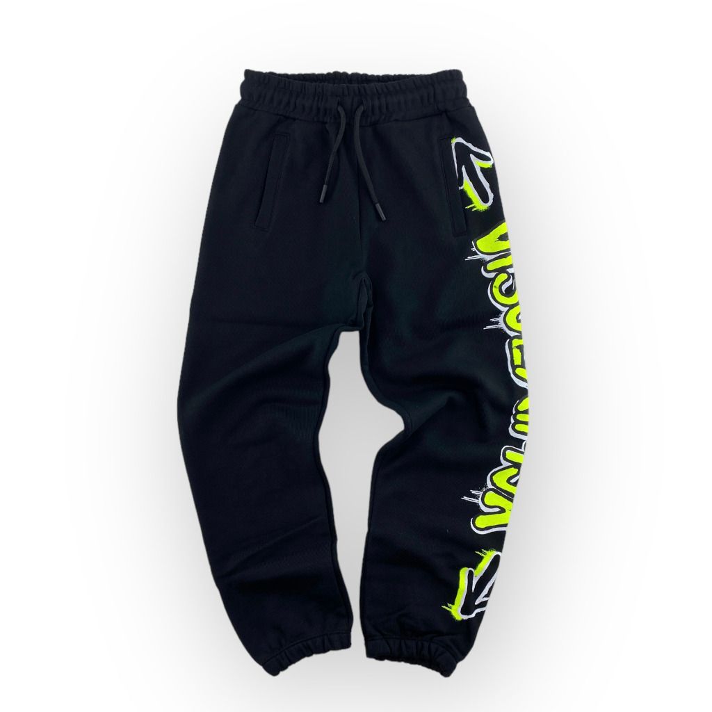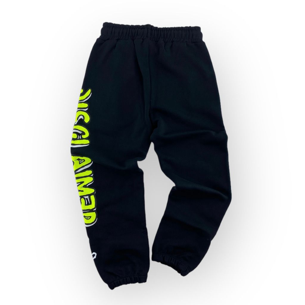 | Info Prodotto | Pantalone tuta nero con scritta fluo della linea bambino Disclaimer. |