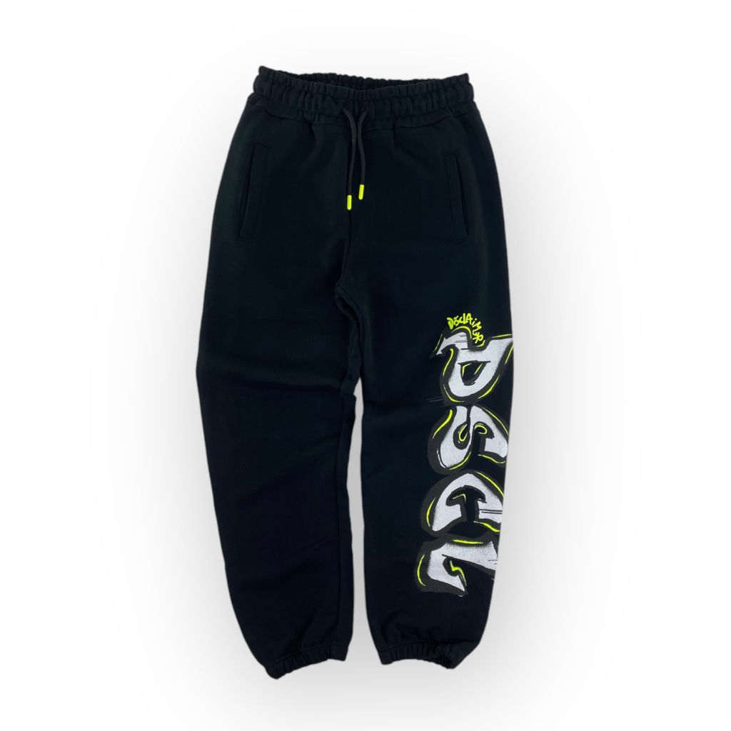 | Info Prodotto | Pantalone in felpa di colore nero con scritta fluo da bambino della linea Disclaimer. |