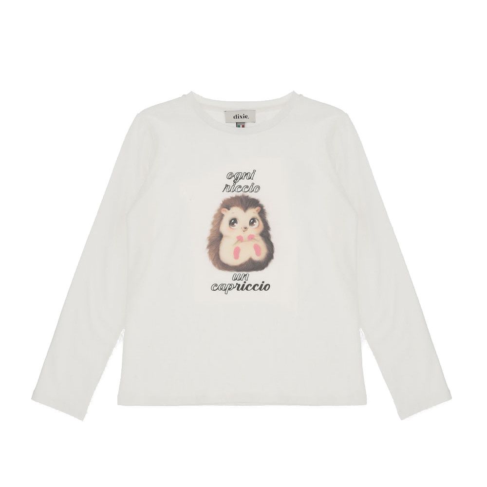 T-shirt manica lunga di colore bianco con stampa riccio da bambina della linea Dixie.