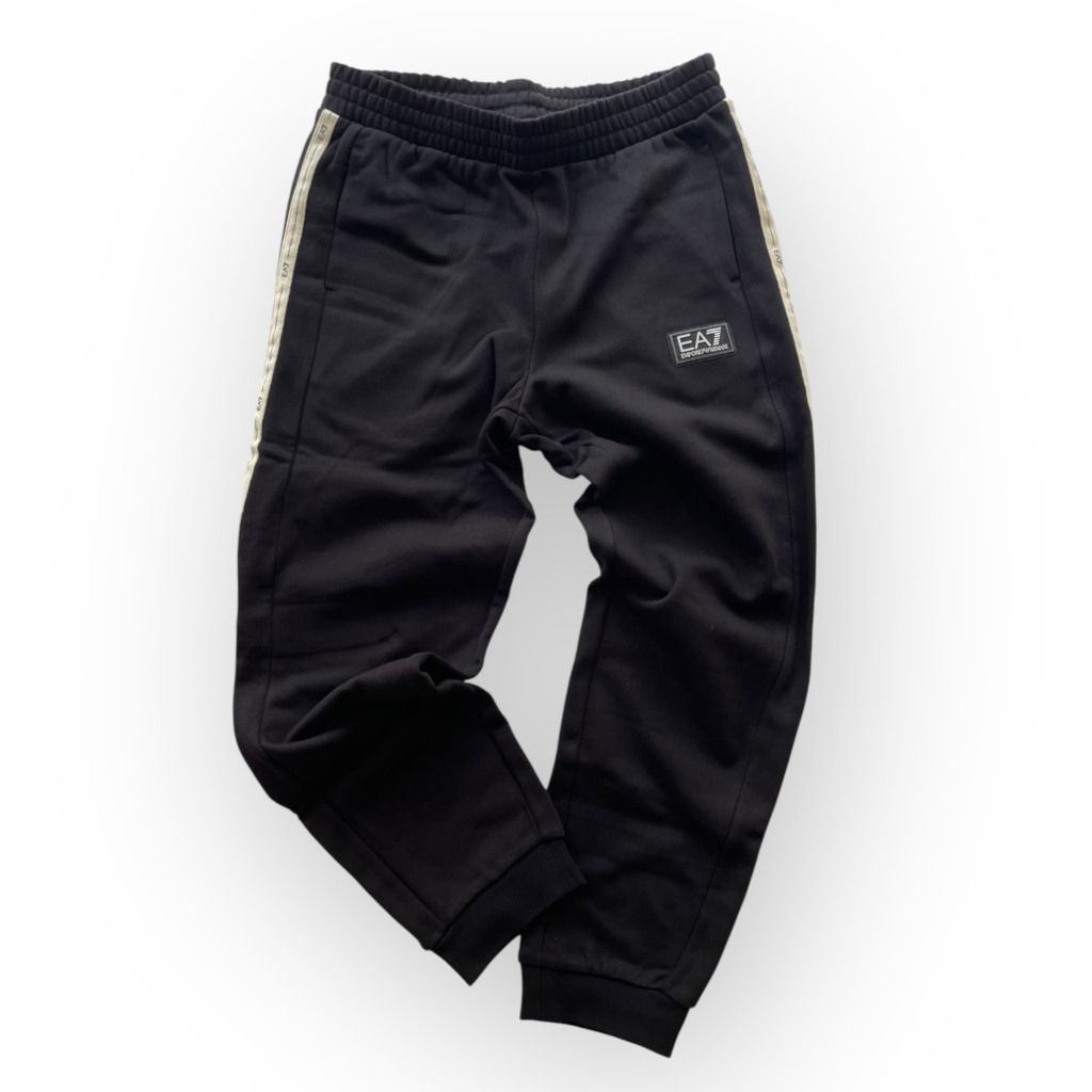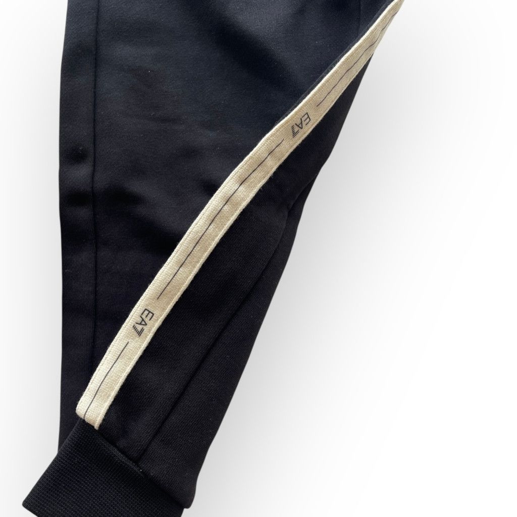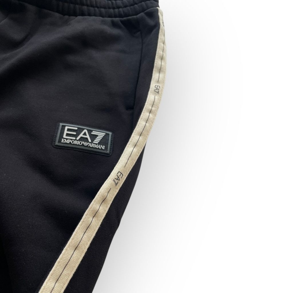 | Info Prodotto | Pantalone in felpa di colore nero con profili beige da bambino della linea EA7 Armani. |