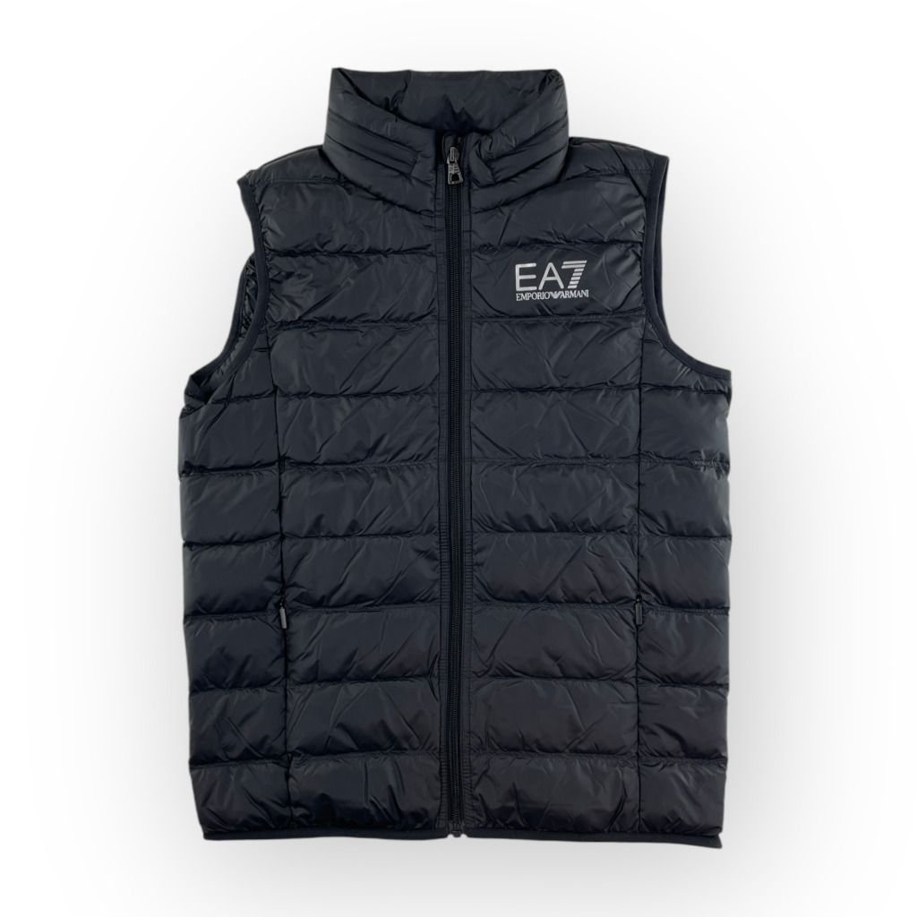 Iconico gilet nero della linea da ragazzo EA7. Perfetto per le mezze stagioni grazie alla sua pesantezza leggera.