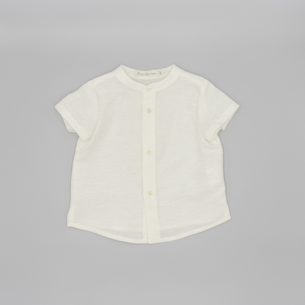 Elegante, delicato e perfetto per le occasioni speciali: il completo Linea Fina con camicia bianca in lino e pantalone a salopette beige è la scelta ideale per vestire i più piccoli con stile e raffinatezza.