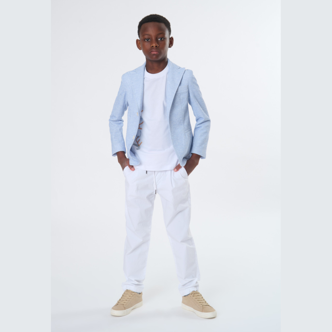 La giacca celeste da ragazzo della linea Jeckerson è il capo ideale per uno stile fresco, moderno e curato. Realizzata con materiali di qualità e caratterizzata da un taglio elegante, offre comfort e libertà di movimento in ogni occasione. Il colore celeste dona luminosità e raffinatezza, rendendo questa giacca perfetta per cerimonie, eventi speciali o per completare un look casual chic. Un capo versatile e distintivo, immancabile nel guardaroba dei giovani che amano vestirsi con classe.
