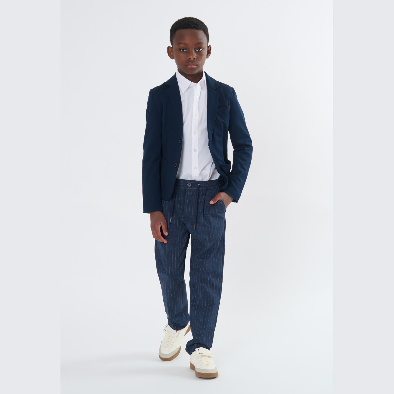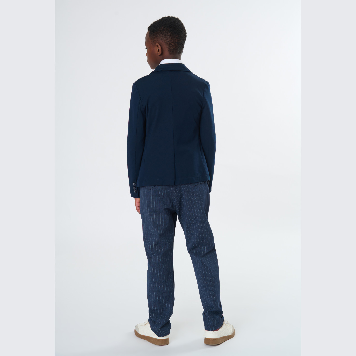 Elegante e confortevole, la giacca da bambino blu in punto Milano della linea Jeckerson è perfetta per creare outfit raffinati e versatili. Realizzata con materiale morbido ed elastico, assicura libertà di movimento e una vestibilità impeccabile. Ideale per cerimonie, eventi speciali o look casual chic, questa giacca dal design moderno unisce qualità e stile, diventando un capo indispensabile nel guardaroba dei più piccoli.