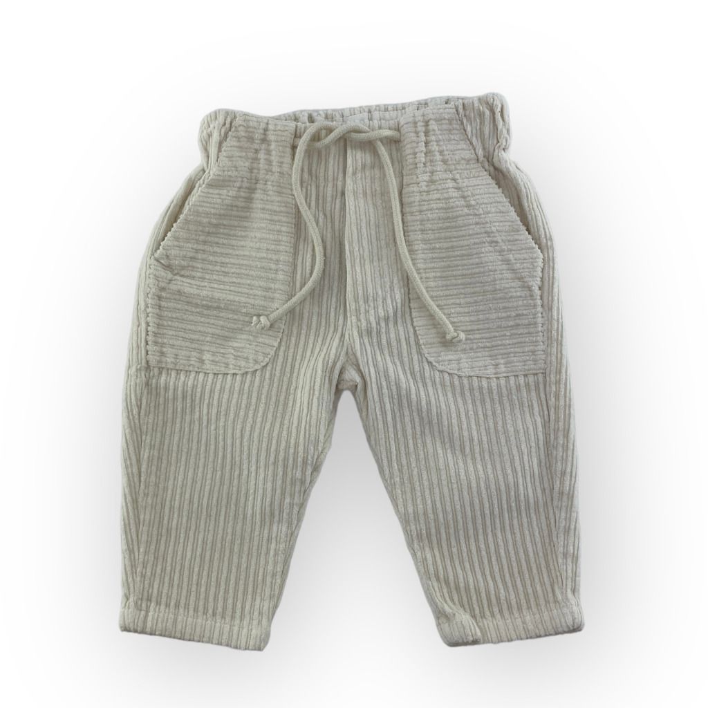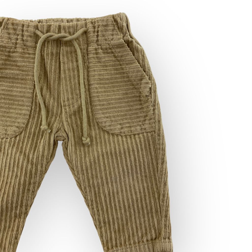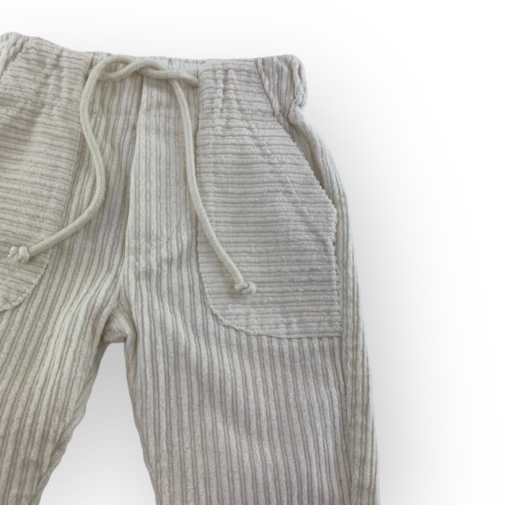 Pantalone in velluto elasticizzato nei colori panna e beige, della linea Jo Milano baby.
