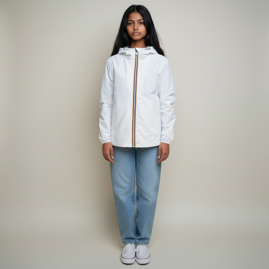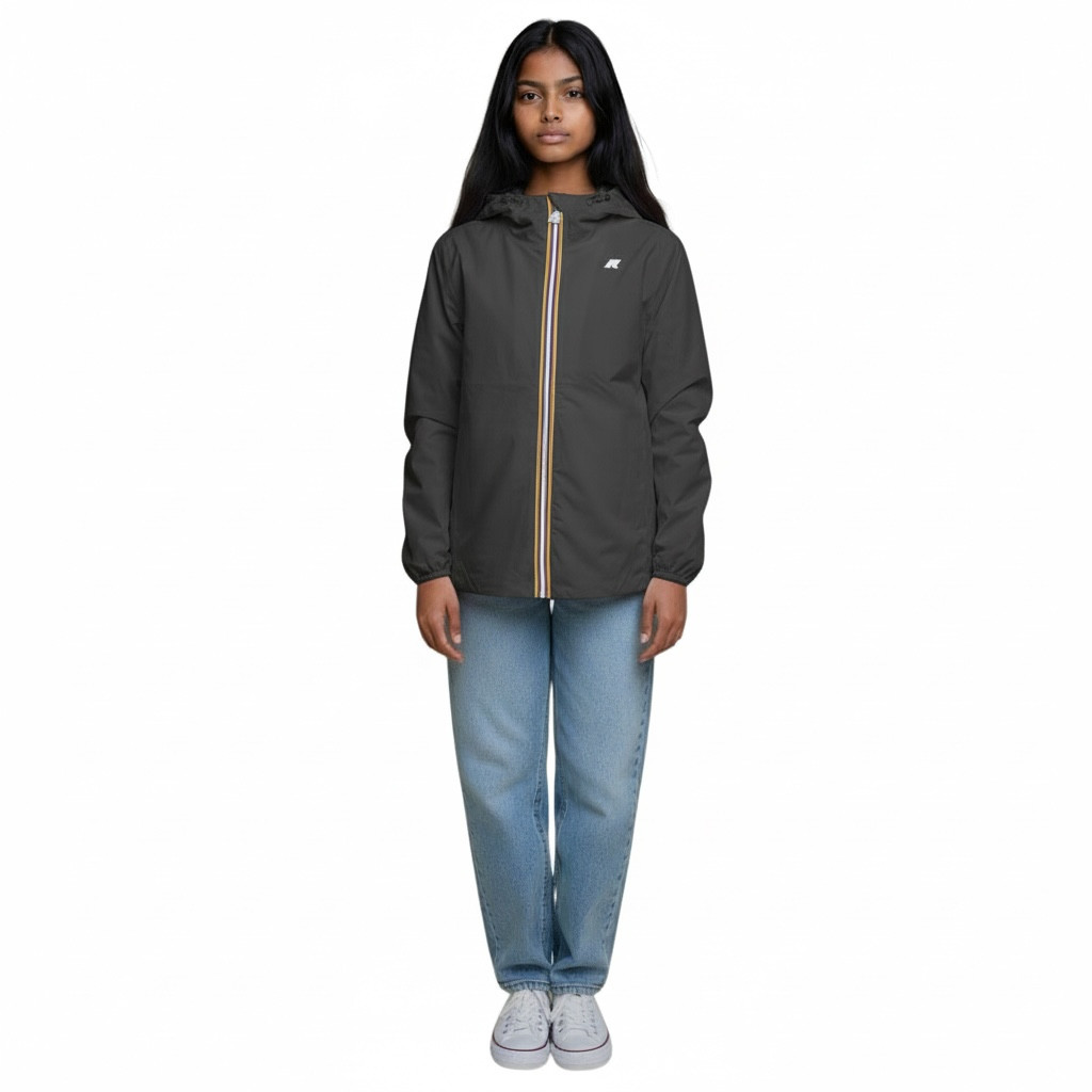 Giacchetto modello femminile K-Way dal taglio leggermente svasato sul fondo, pensato per unire comfort e stile. Realizzato con tessuto interno morbido e confortevole, è ideale per la mezza stagione. Dotato di chiusura con zip e cappuccio, offre protezione e una vestibilità più femminile e raffinata, perfetta per ogni occasione.