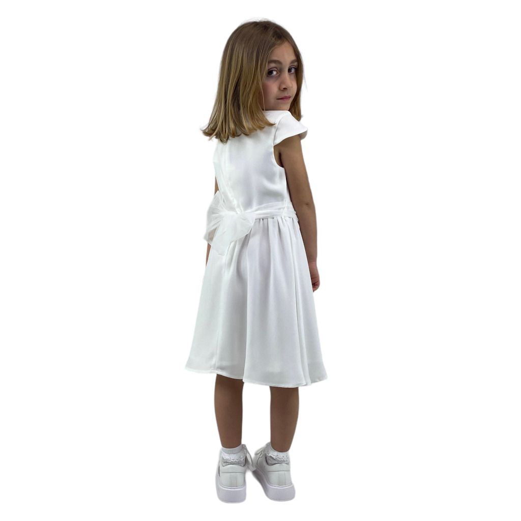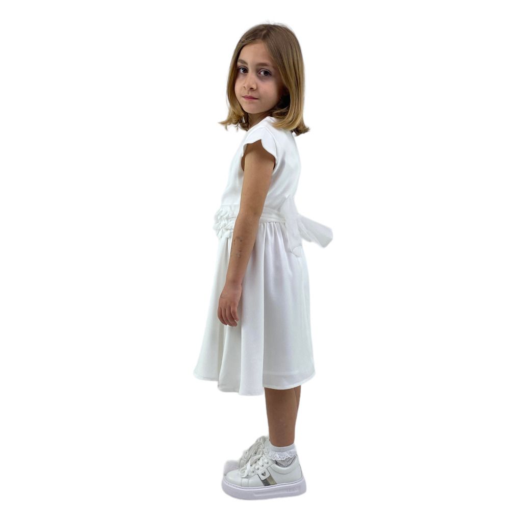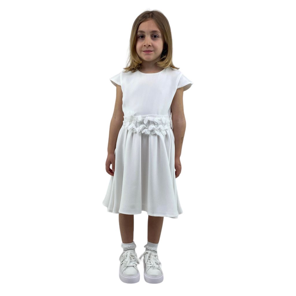 | Info Prodotto | Abito di colore latte con fiori in vita della linea Kocca bimba. |