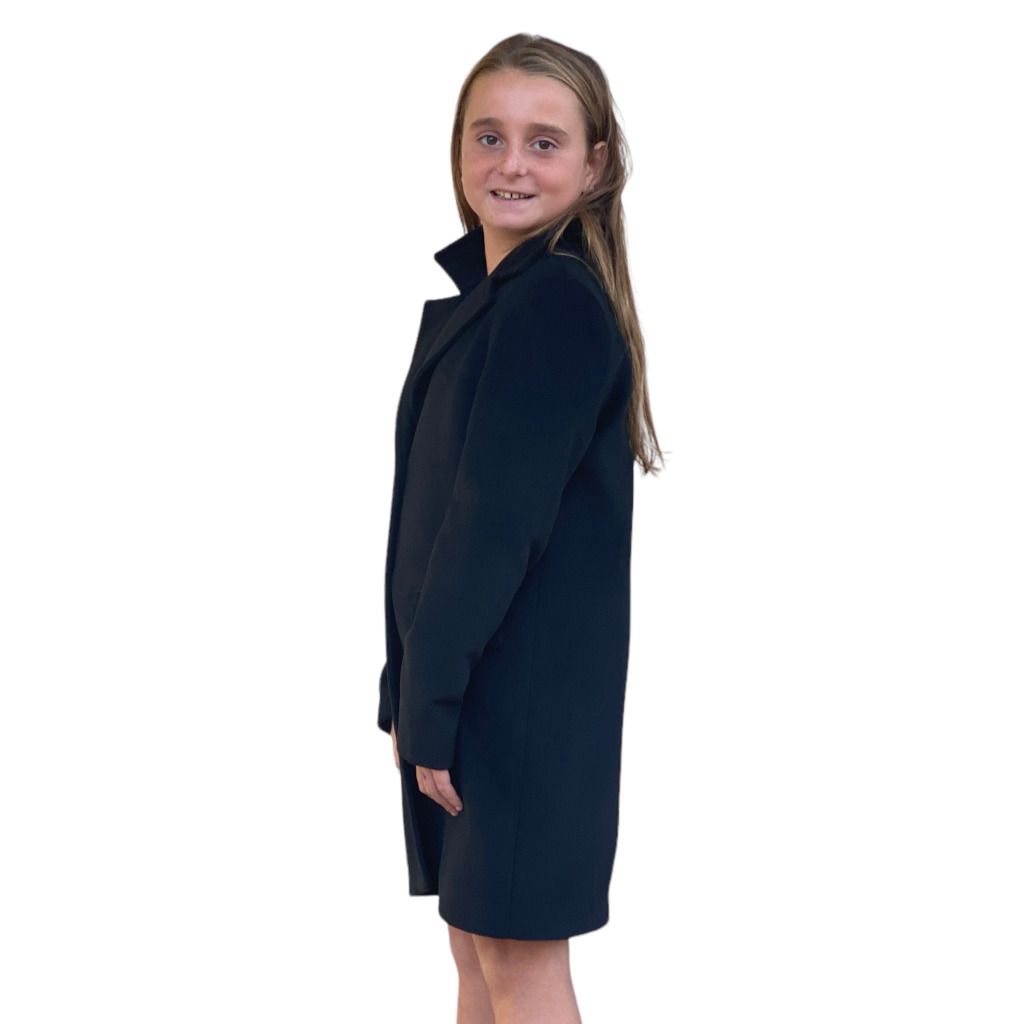 Cappotto in panno nero del brand Kocca bambina. Classico capo da avere sempre nell’armadio per qualsiasi occasione. nnMATERIALE: 92% poliestere, 8% viscosa. Fodera: 55% acetato, 45% polibutilentereftalato.