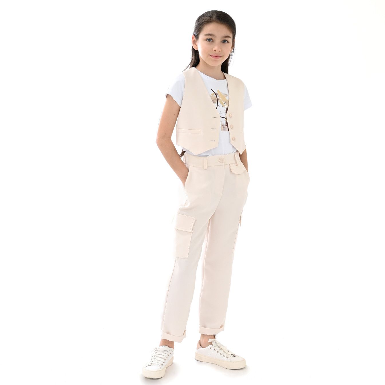 Pantalone con tasconi in tessuto crepe di colore panna da bambina della linea Kocca.