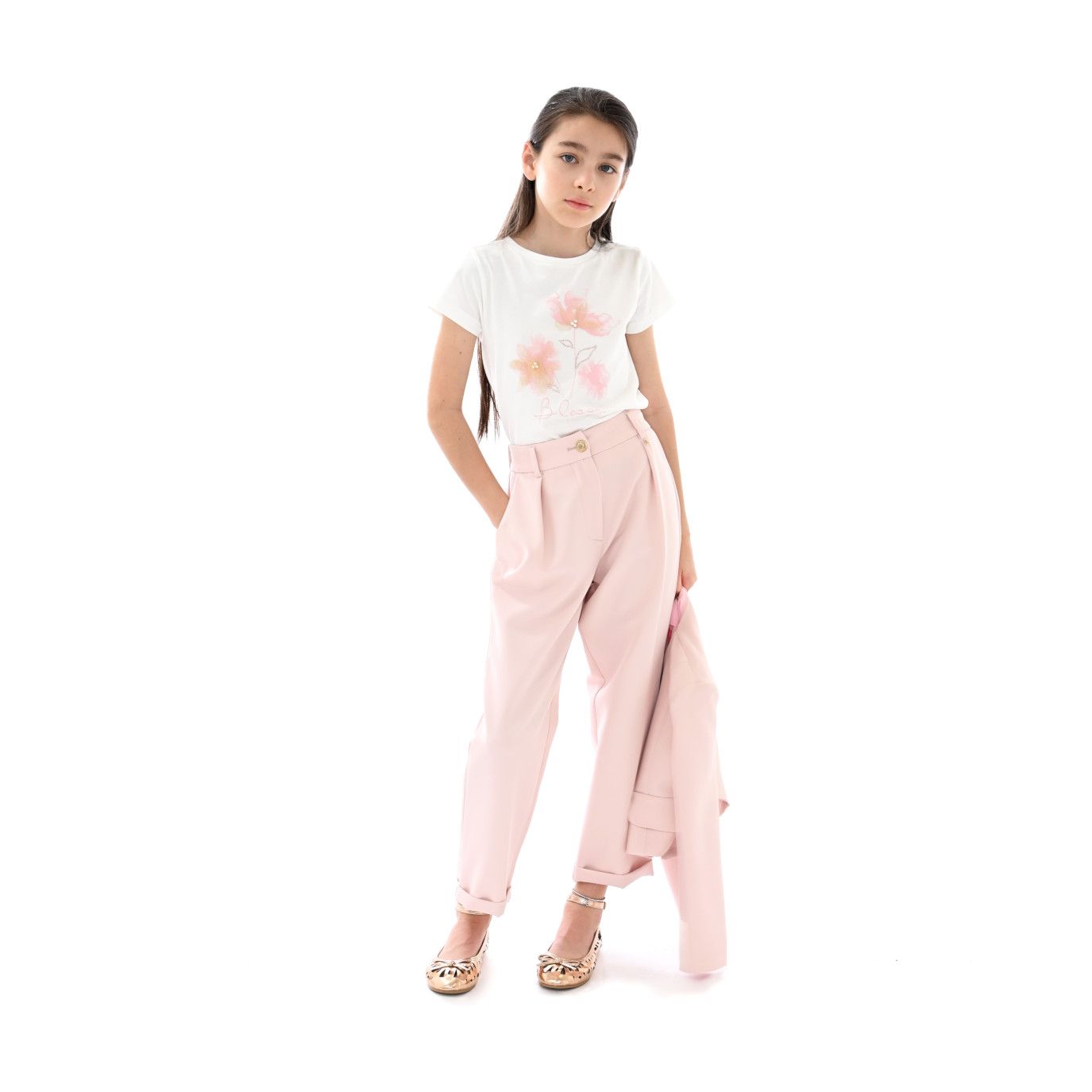 Pantalone lungo a sigaretta di colore petalo da bambina della linea Kocca.
