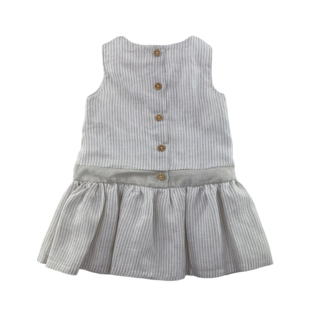 | Info Prodotto | Vestitino a righe beige e bianco della linea da bambina di Lalalù. |