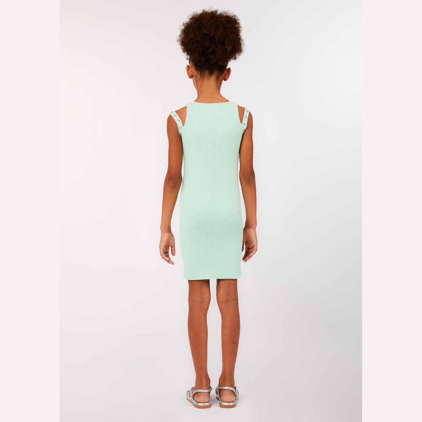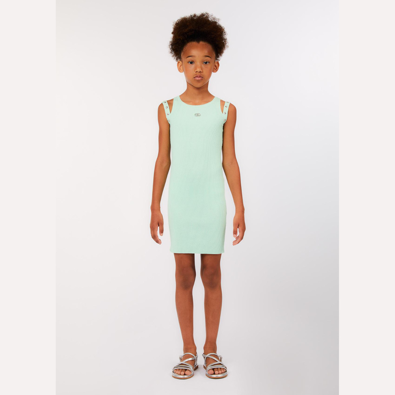 L’abito bambina della linea Liu Jo è la scelta ideale per un look elegante e versatile durante la stagione primaverile ed estiva. Il design stile tubino, con vestibilità aderente e modello sbracciato, valorizza la silhouette mantenendo al tempo stesso un’eleganza semplice e moderna, perfetta per cerimonie, eventi speciali o occasioni più casual ma curate.