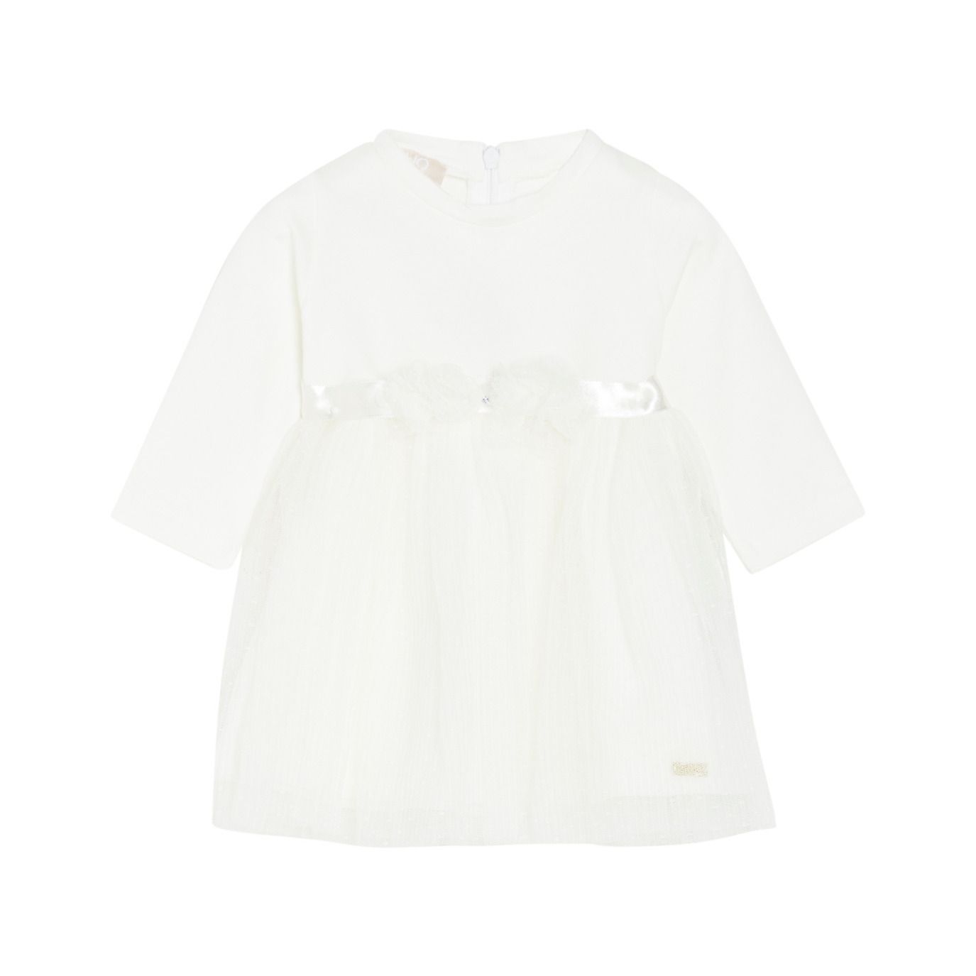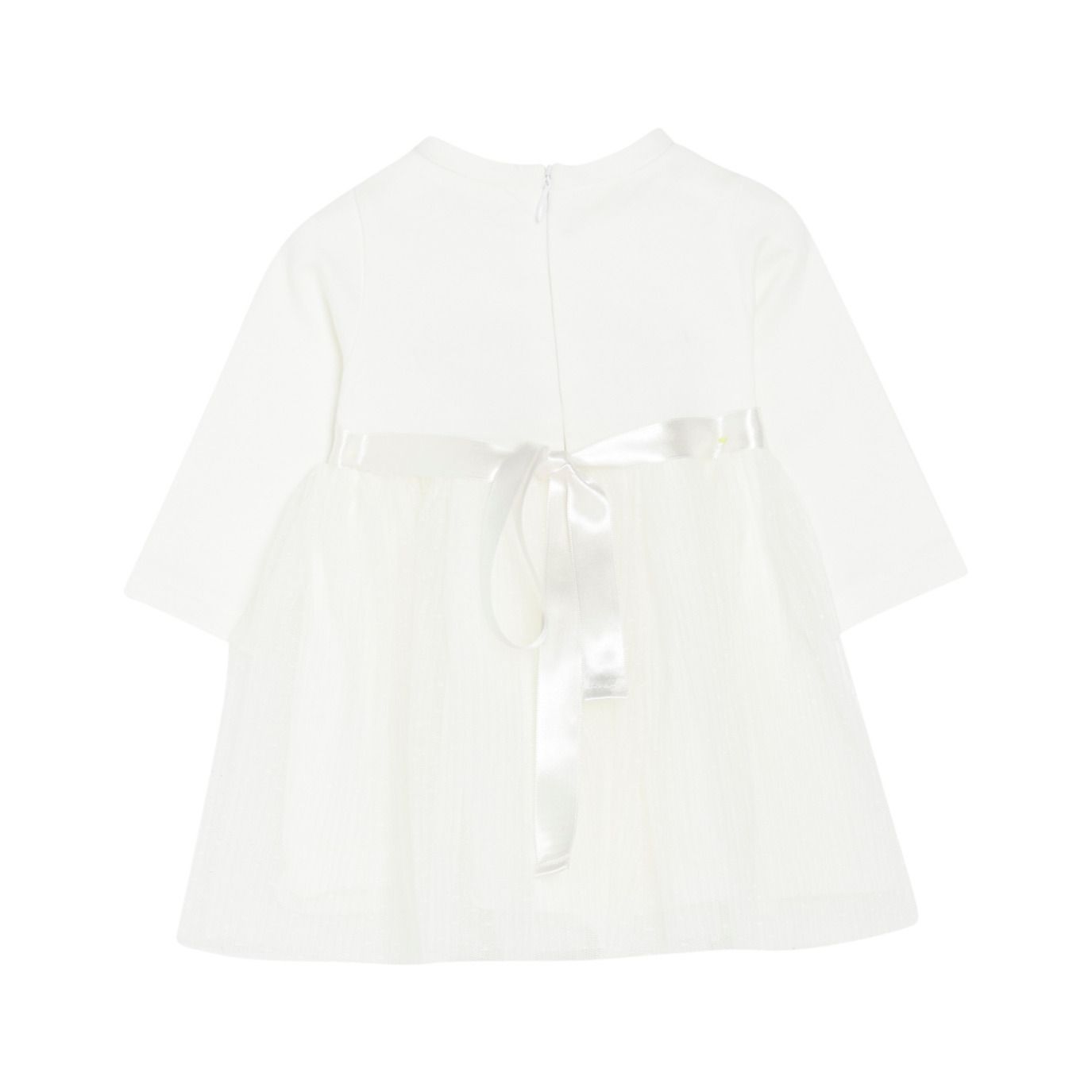 Abito morbido della linea da bambina di Liu Jo. La manica lunga leggera ล perfetta per far star comoda la tua bimba anche nei giorni importanti. La gonna in tulle ล puntinata ed evidenziata dalla cintura in raso con i fiori.nnMATERIALE: 95% cotone, 5% elastane.