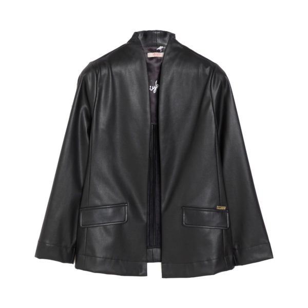 Blazer in ecopelle senza bottoni del brand Liu Jo bambina. Adatta per le mezze stagioni. nnMATERIALE: 100% poliestere.
