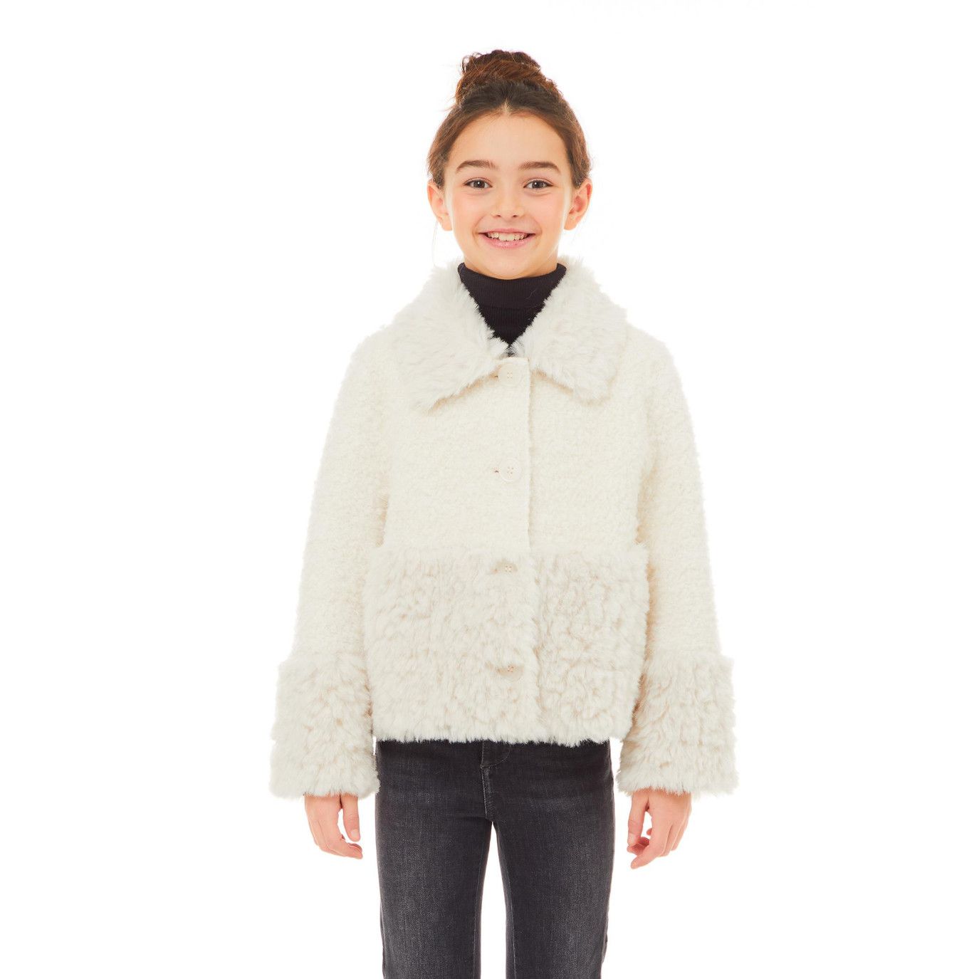 Giaccone teddy sintetico nel colore panna da bambina della linea Liu Jo.