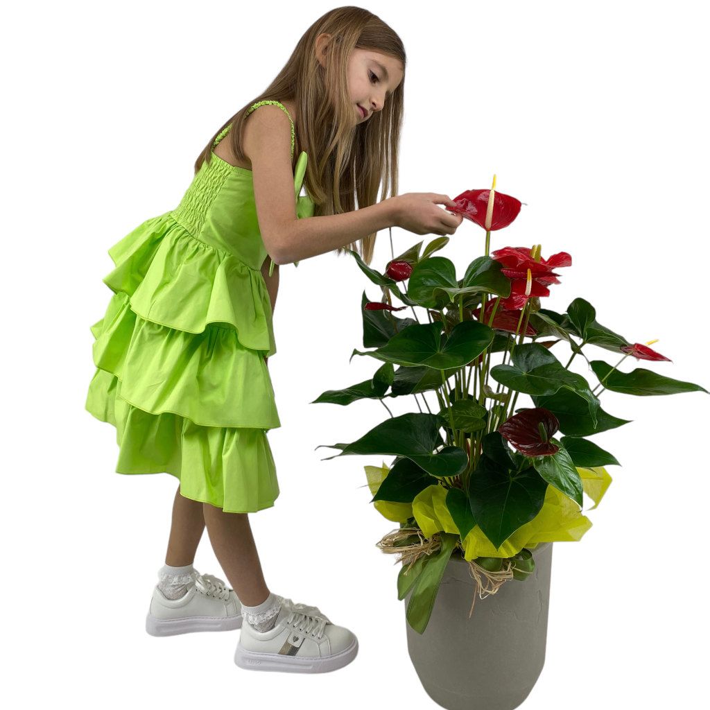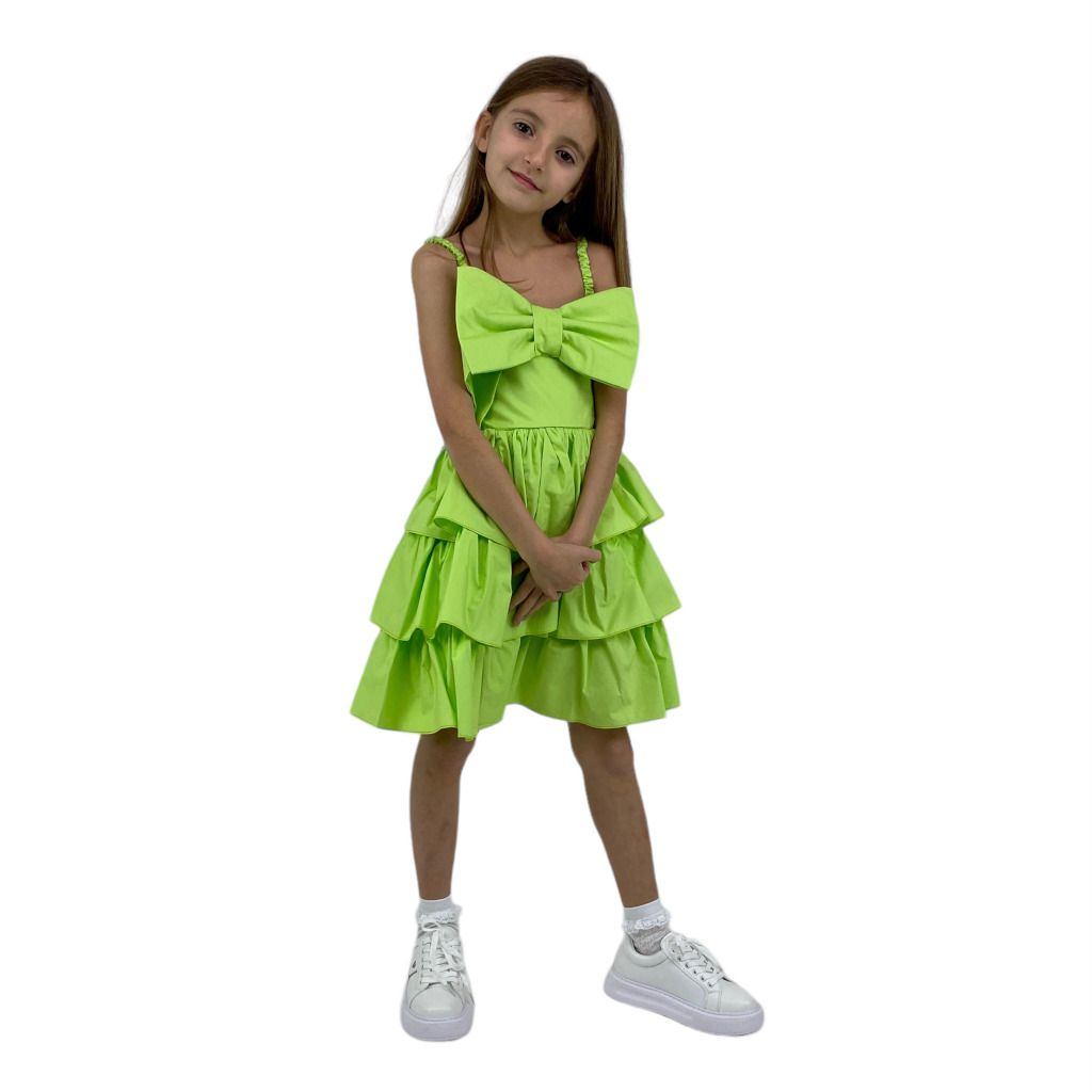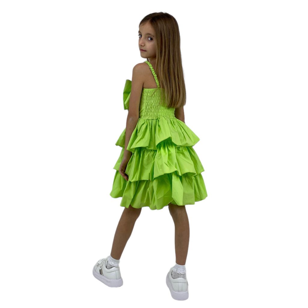 | Info Prodotto | Vestito con spalline e fiocco davanti di colore verde della linea da bambina di Lulù. |