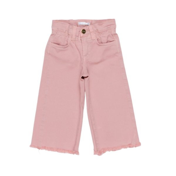Pantalone a palazzo in denim rosa da bambina della linea Lulù baby.
