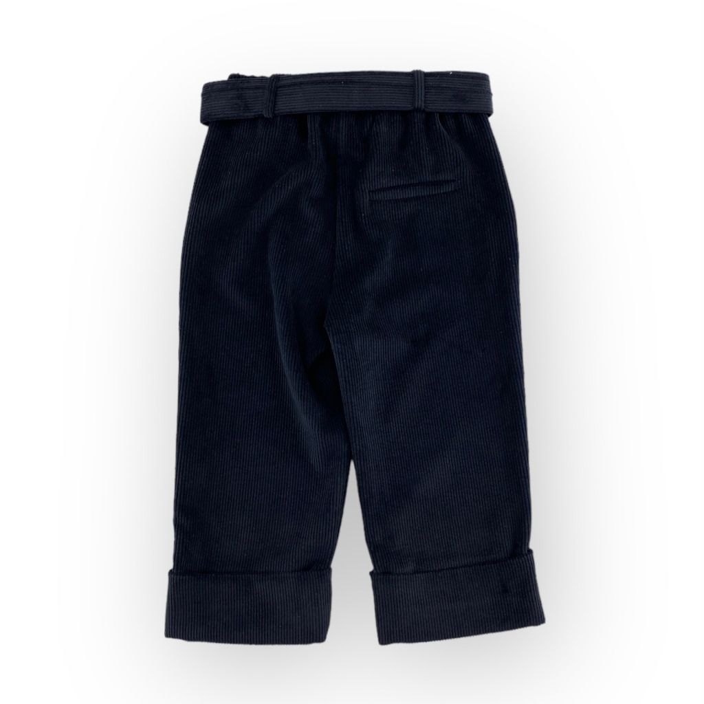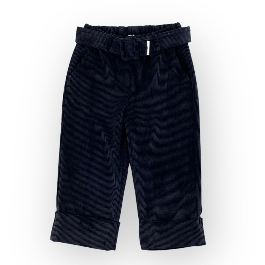 Pantalone in velluto elasticizzato, a palazzo con cintura abbinata, nei colori nero e panna, della linea Lulù bimba.