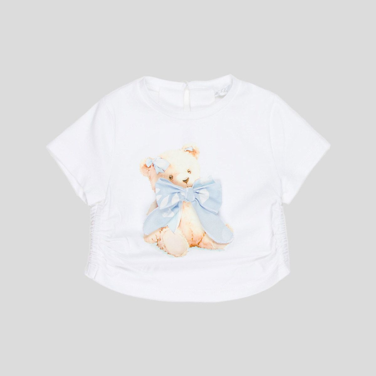 T-shirt mezza manica di colore bianco con stampa orso della linea baby Lulù.