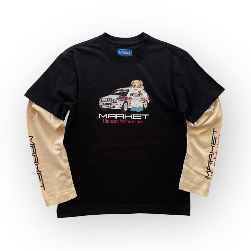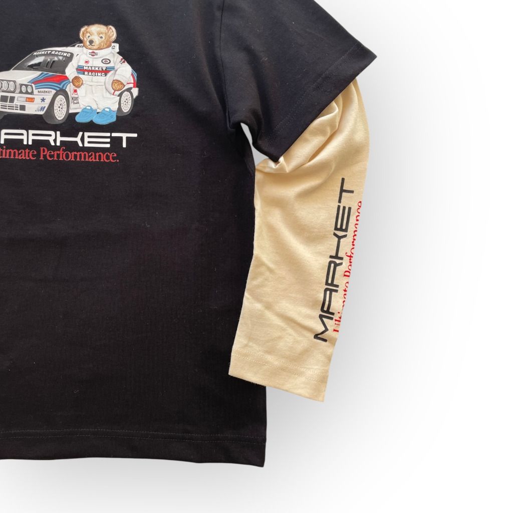 | Info Prodotto | T-shirt manica lunga di colore nero con stampa orso e logo Market da bambino. |