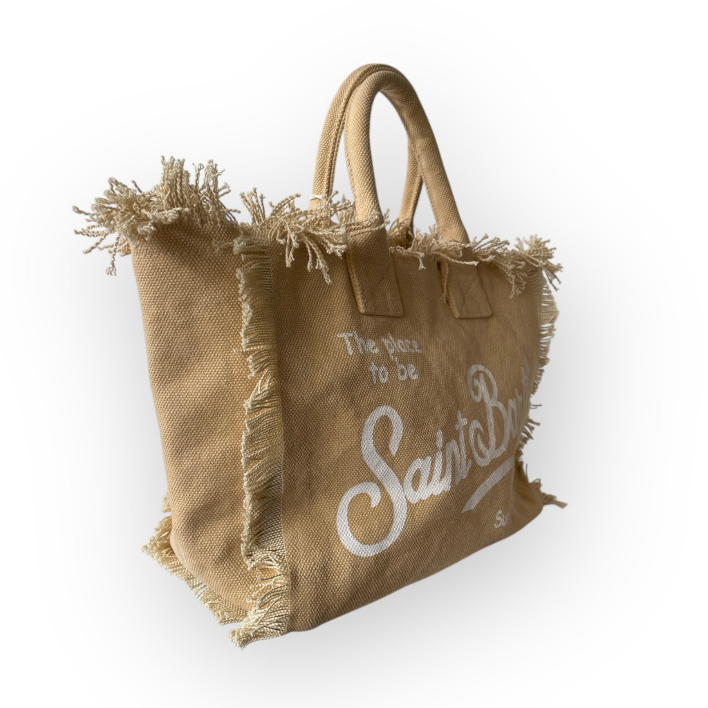 Scopri la borsa MC2 Saint Barth nel sofisticato colore caffè, realizzata in 100% cotone per garantire leggerezza, resistenza e uno stile naturale sempre attuale. Dotata di tracolla staccabile, si adatta facilmente a qualsiasi look: portala a spalla per un uso quotidiano pratico oppure a mano per un tocco più ricercato.