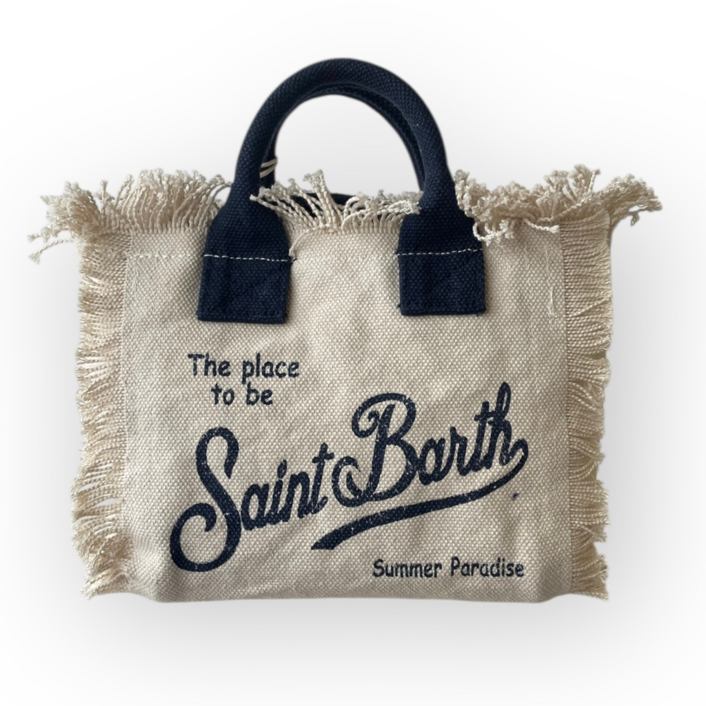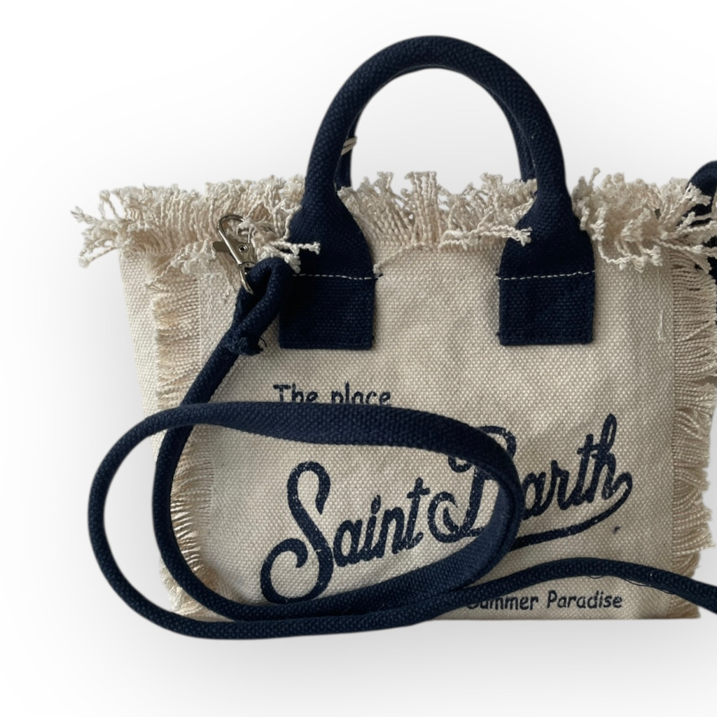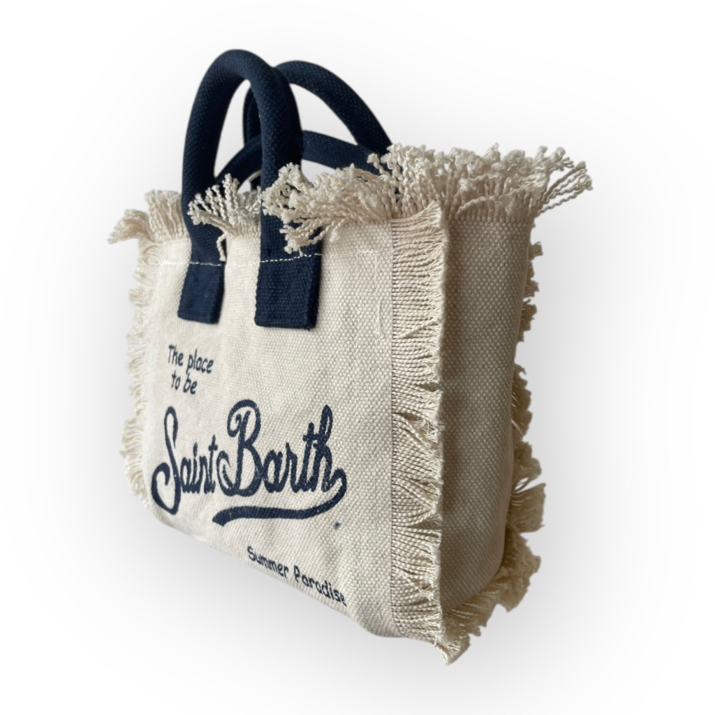 Scopri la Vanity Mini di MC2 Saint Barth nel raffinato colore bianco con scritta blu, un accessorio fresco e luminoso perfetto per la stagione. Realizzata in cotone di alta qualità, questa borsa dalle dimensioni 20x15x8 cm unisce praticità e stile, diventando la compagna ideale per ogni occasione.